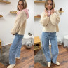 Pull beige clair chiné col rond en grosses mailles avec...