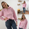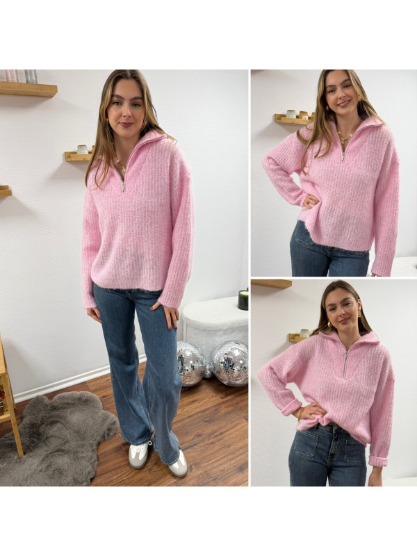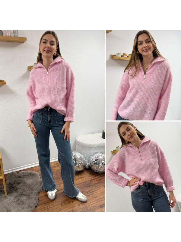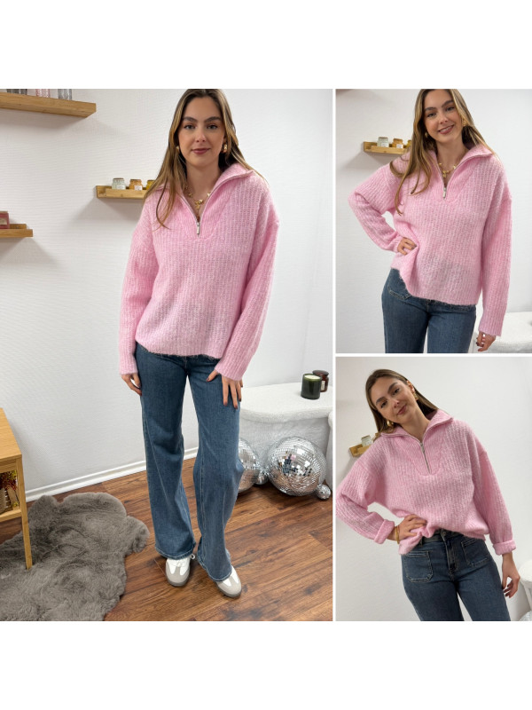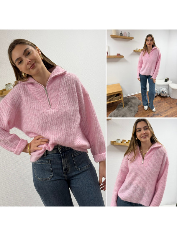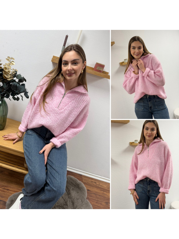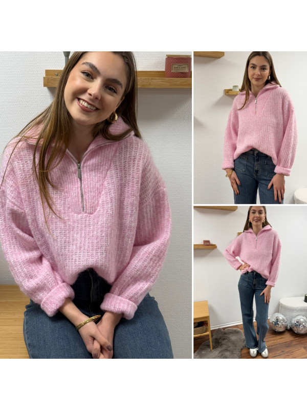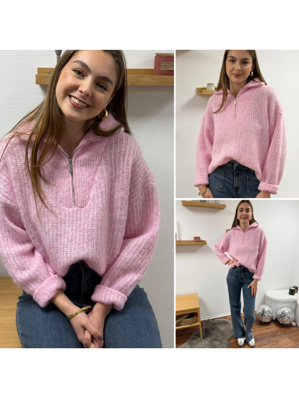 Pull col camionneur à zip rose