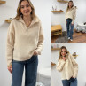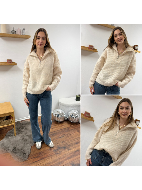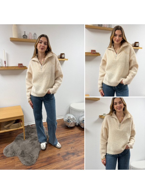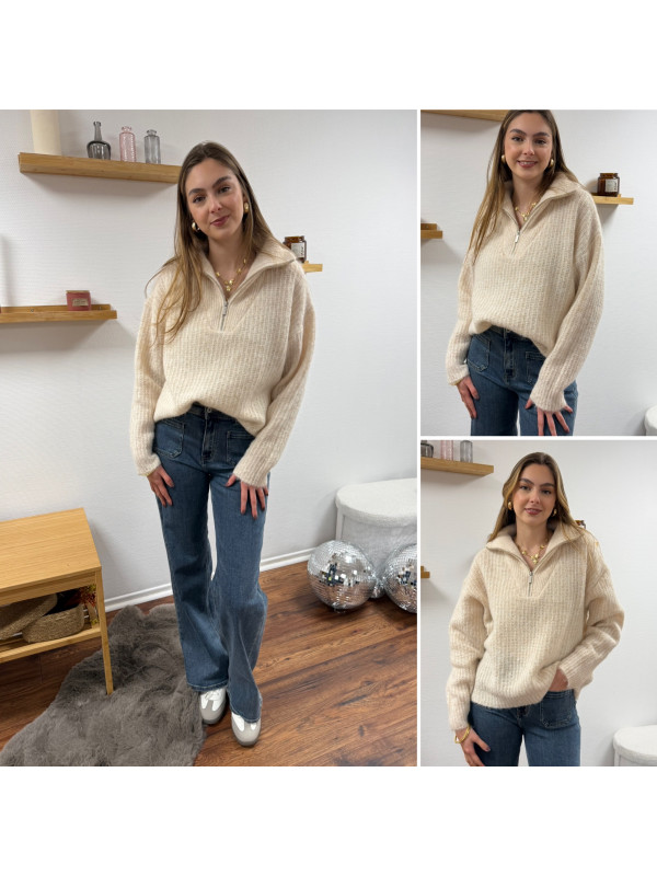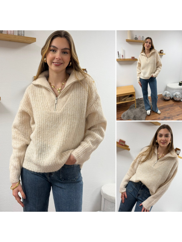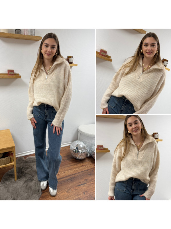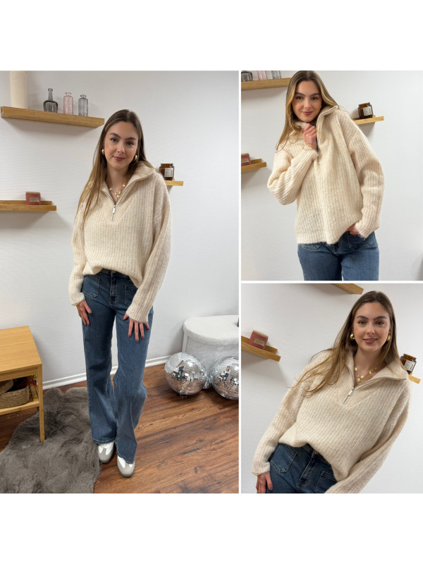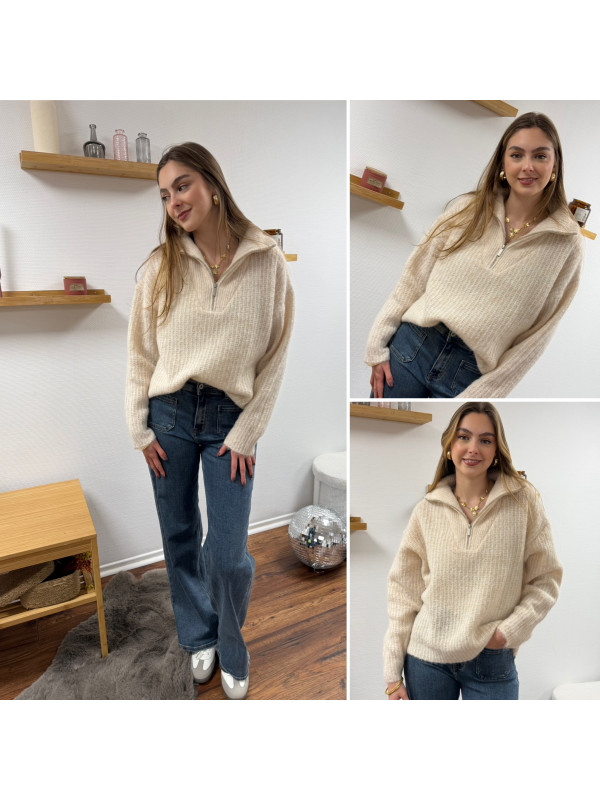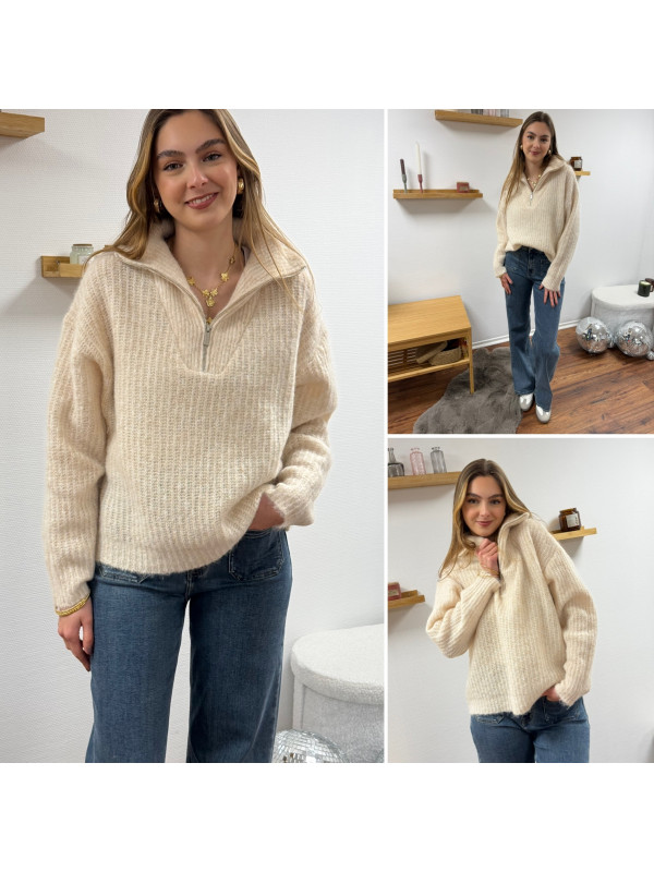 Pull col camionneur à zip écru