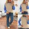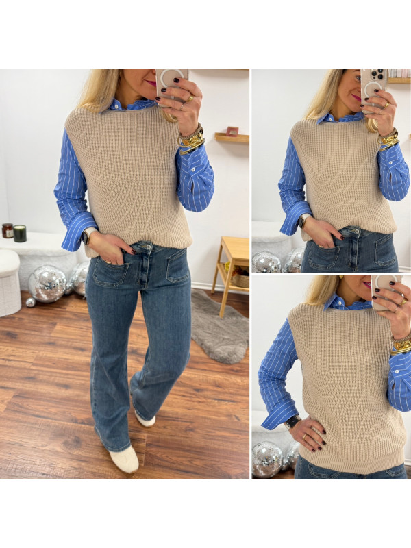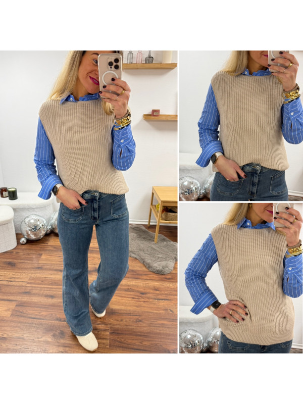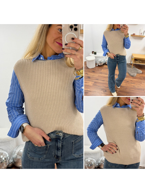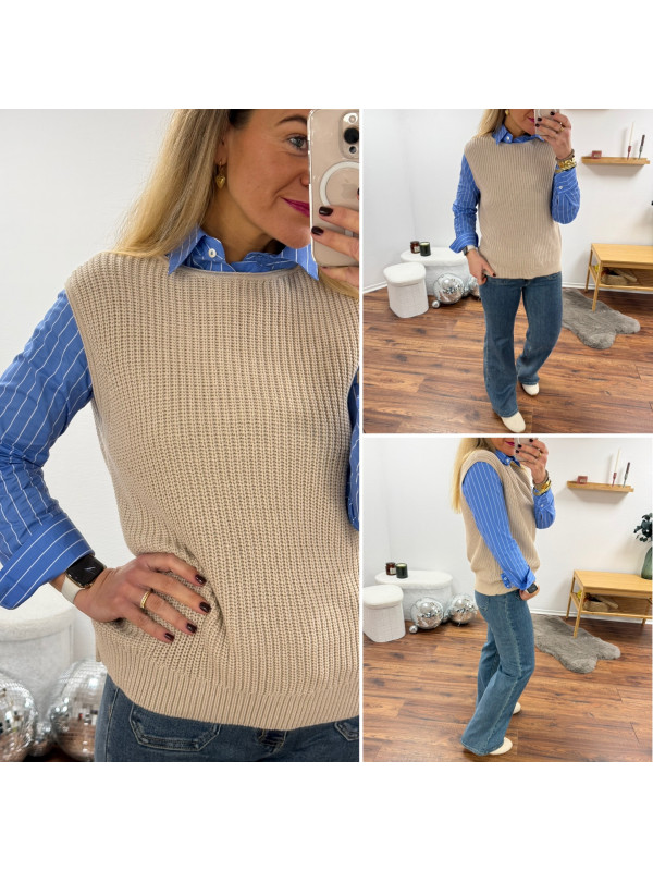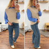 Pull sans manches beige maille tricotée (du 36 au 46)