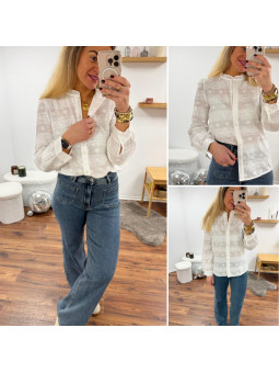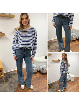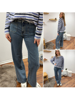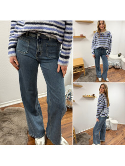 Jean wide leg délavé avec poches plaquées sur le devant...