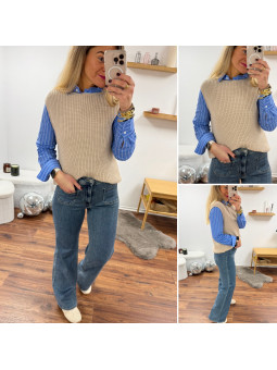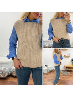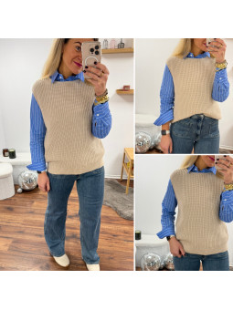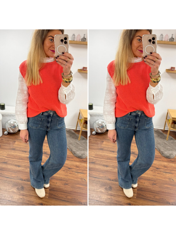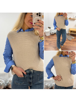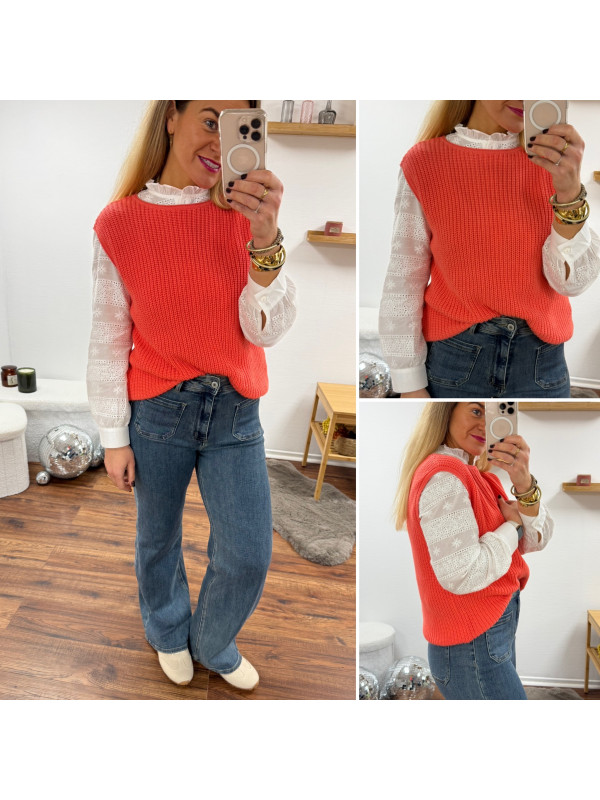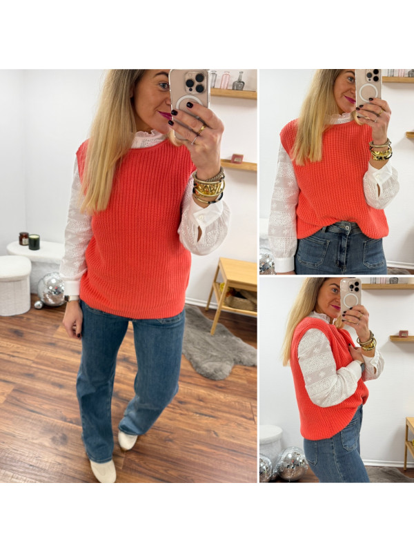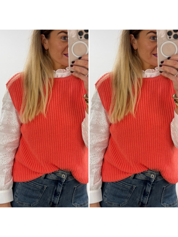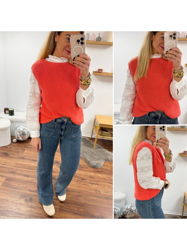 Pull sans manches corail maille tricotée (du 36 au 46)