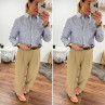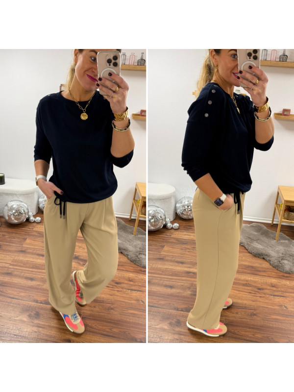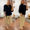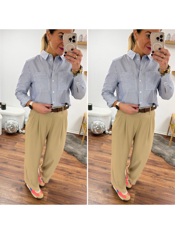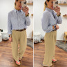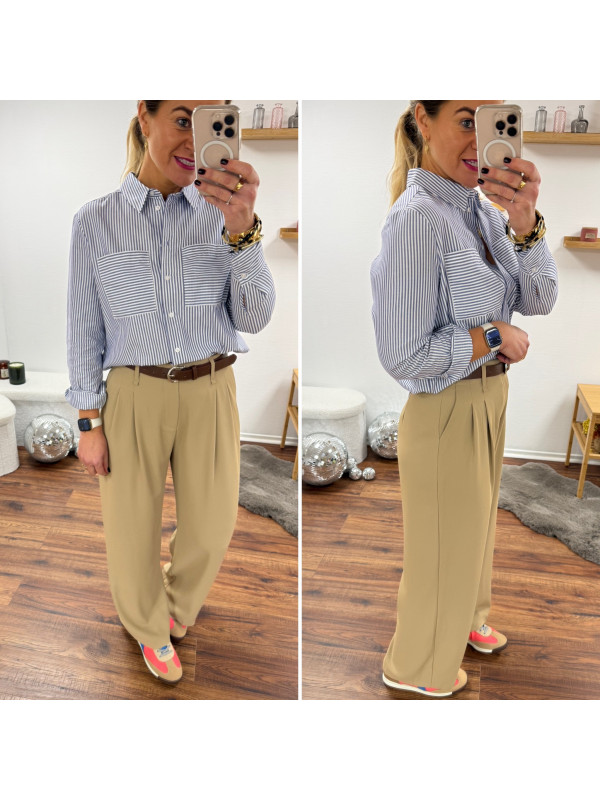 Pantalon fluide beige foncé avec ceinture en similicuir marron