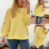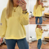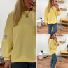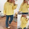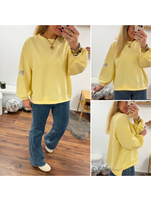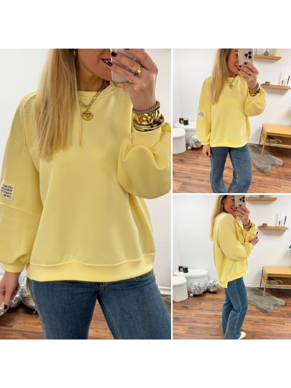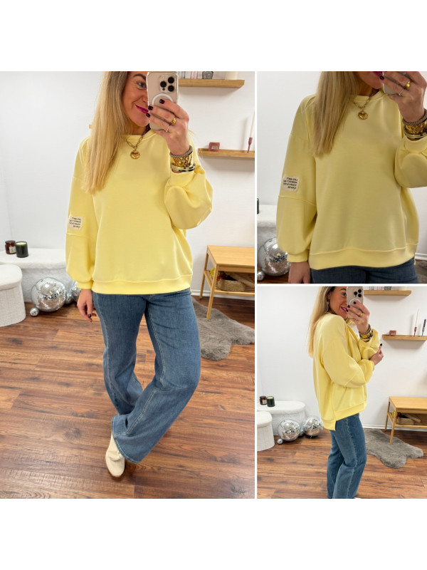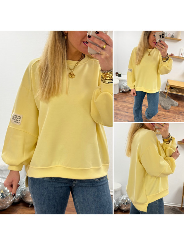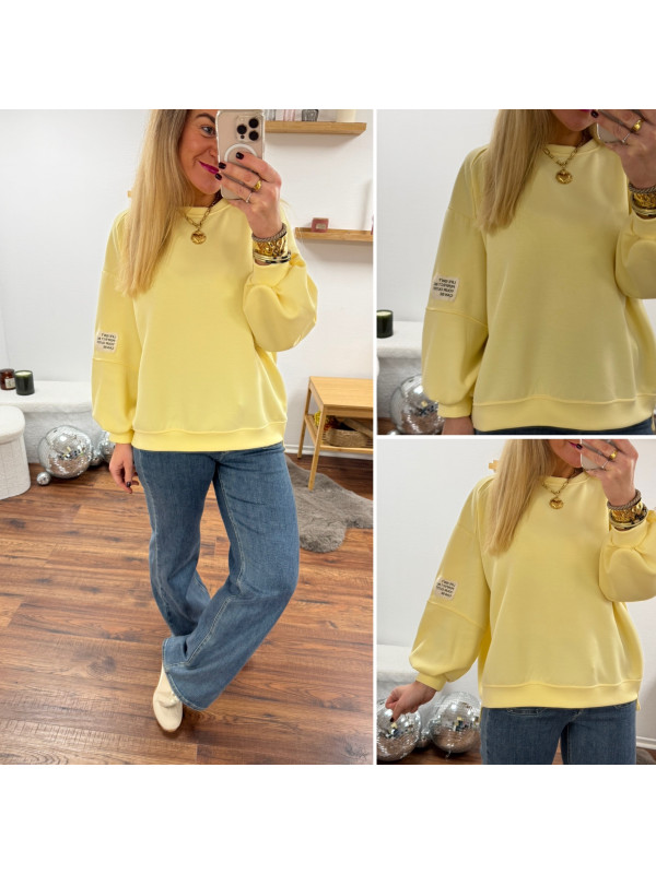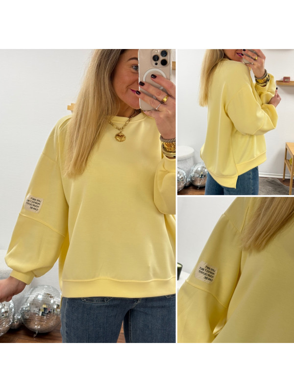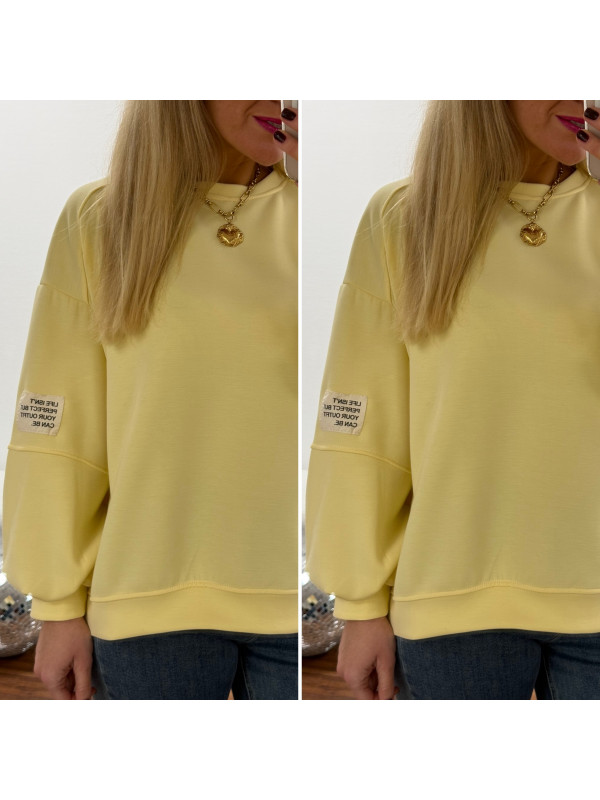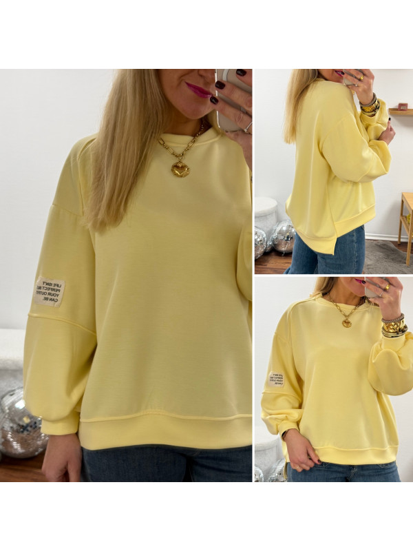 Sweat jaune tout doux avec découpes sur les manches et flap "Life isn't perfect but your outfit can be"