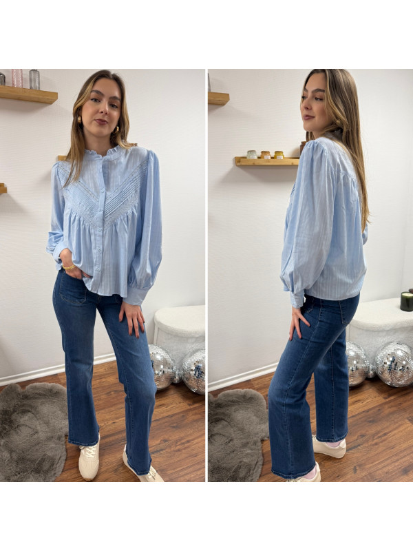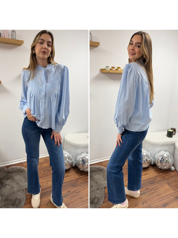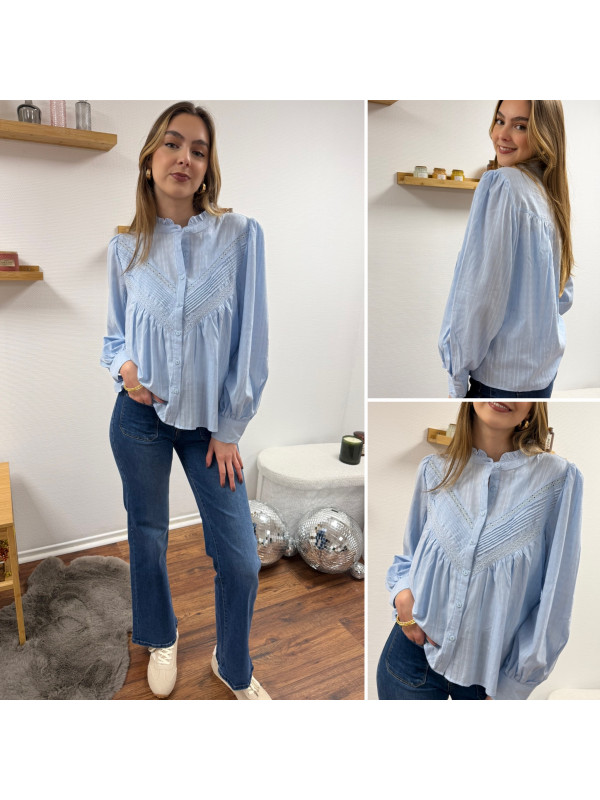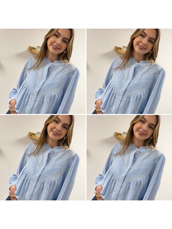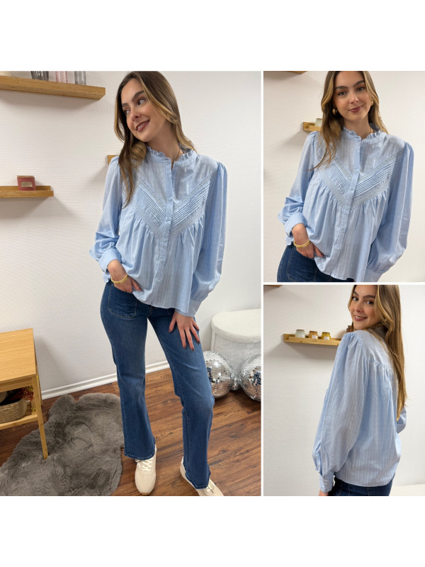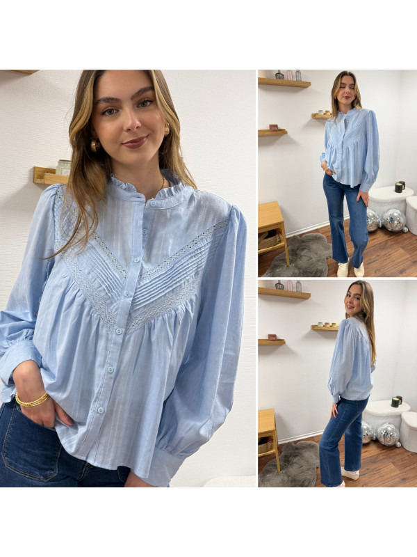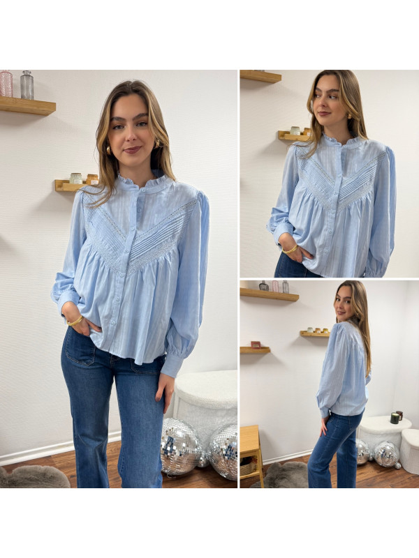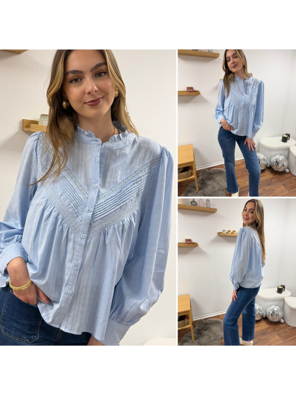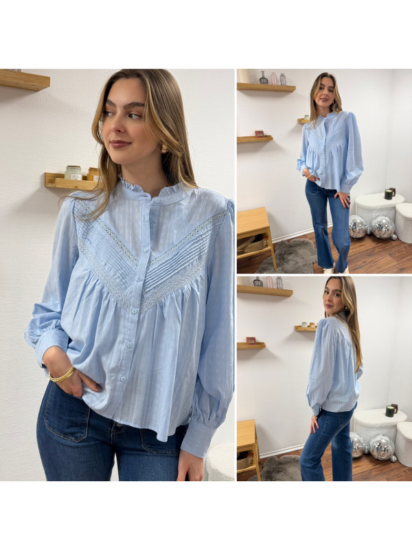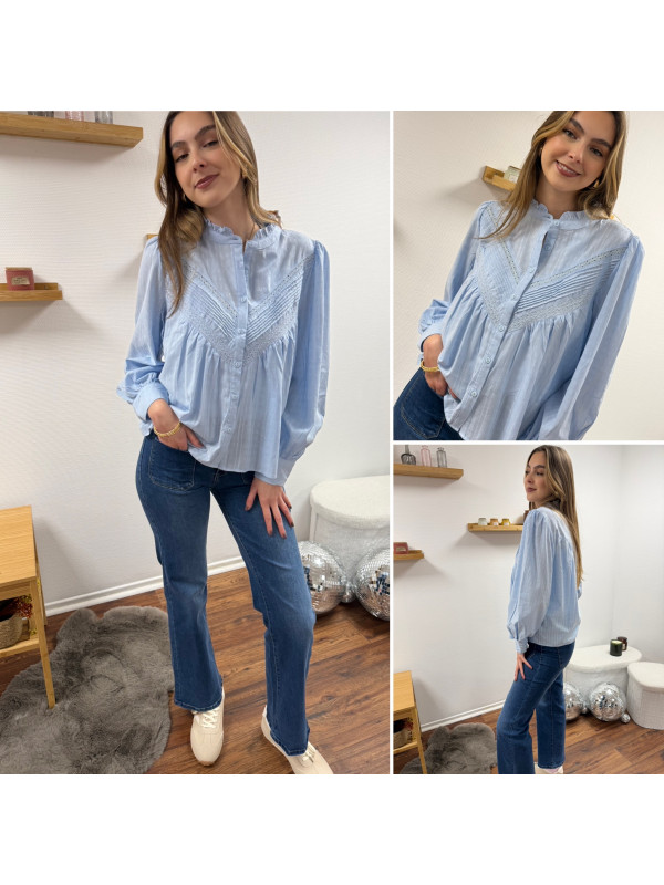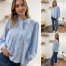 Chemise fluide jaune avec broderies et col volant Le SM...