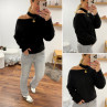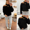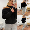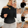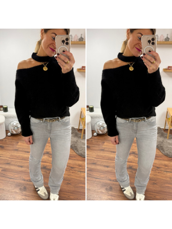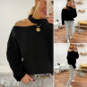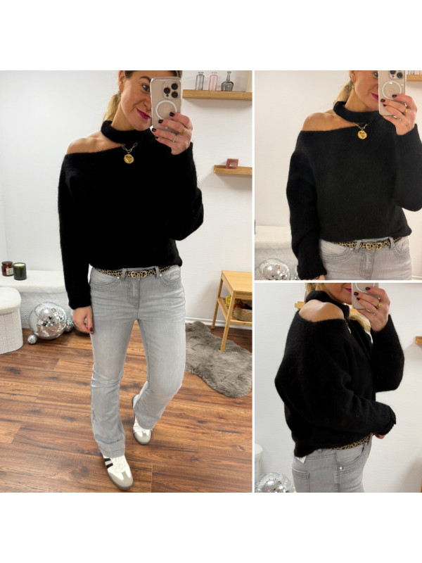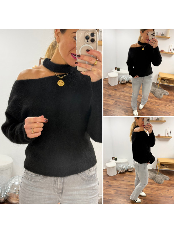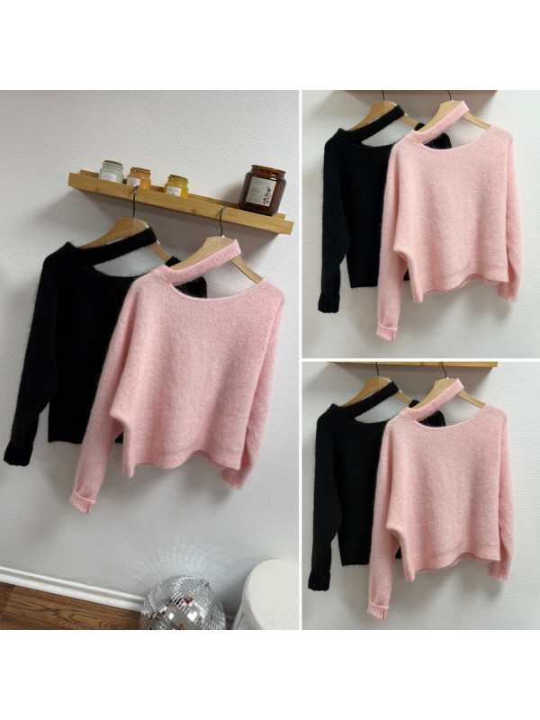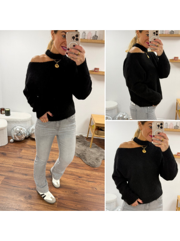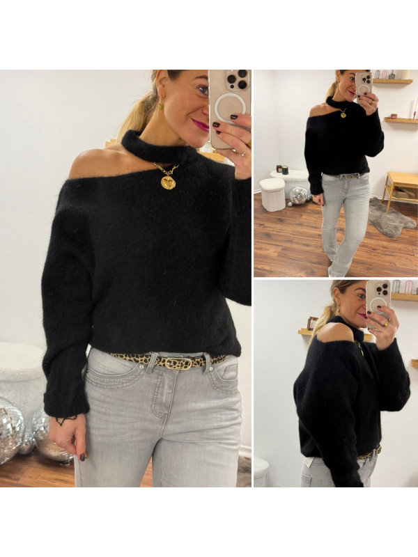 Pull noir avec ouverture sur le col
