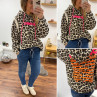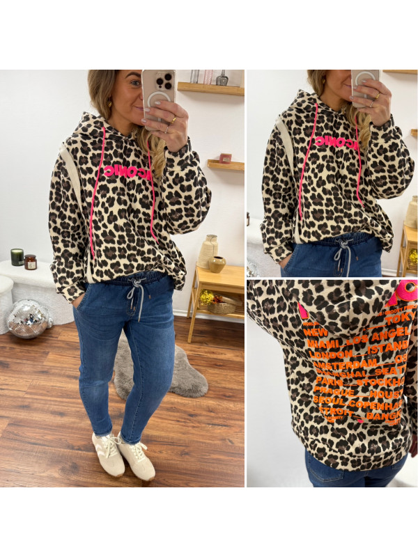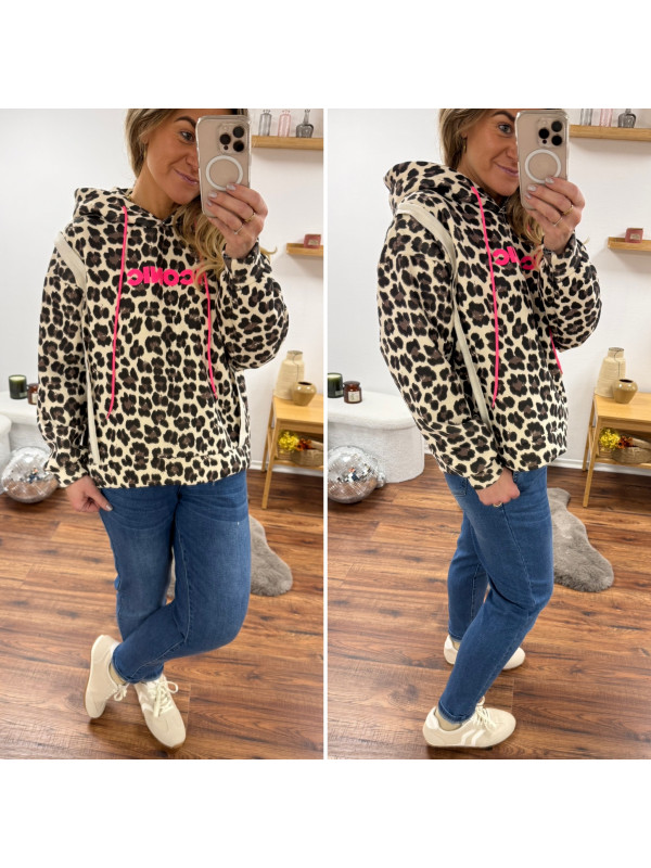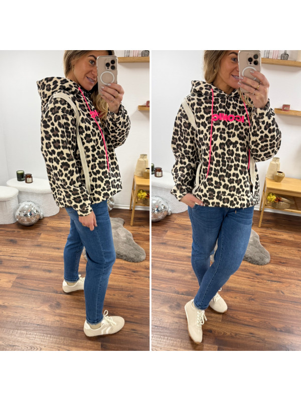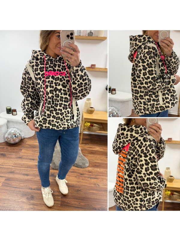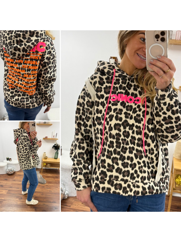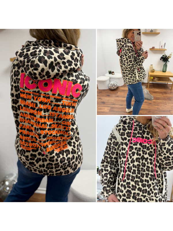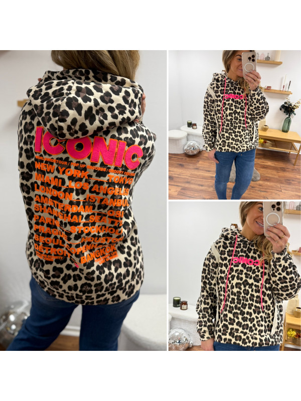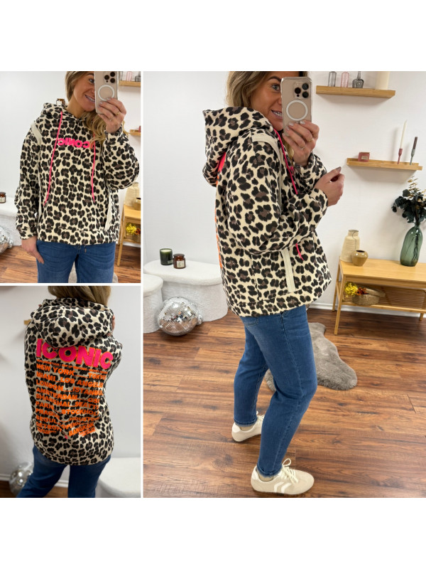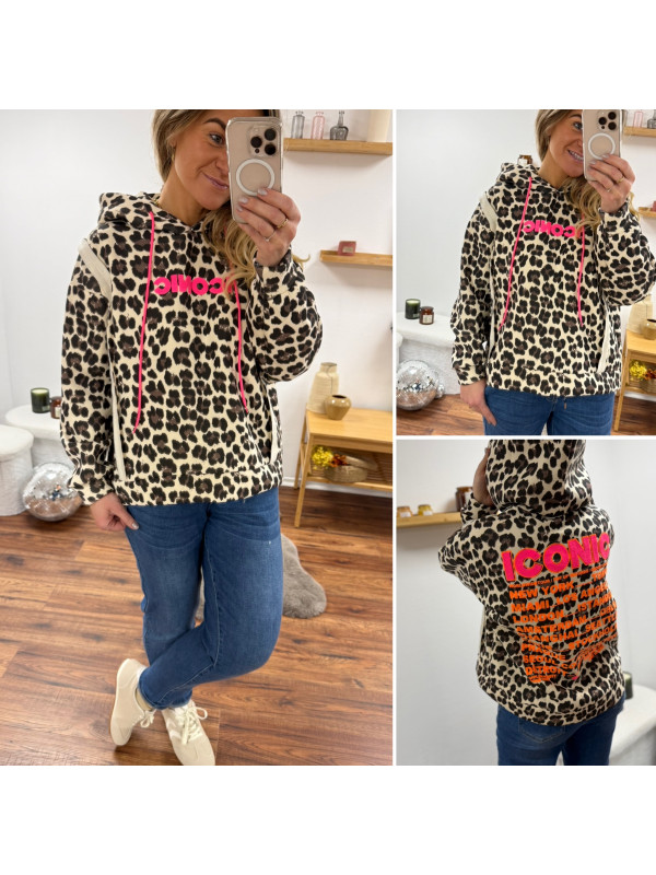 Sweat léopard chocolat à capuche avec logo "iconic" et écriture dos