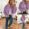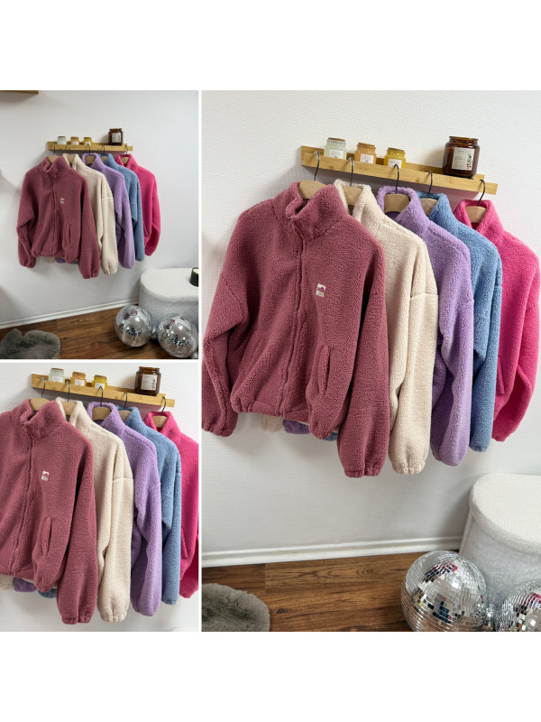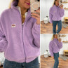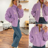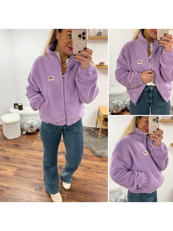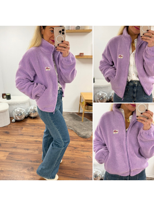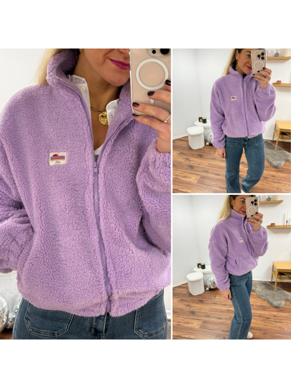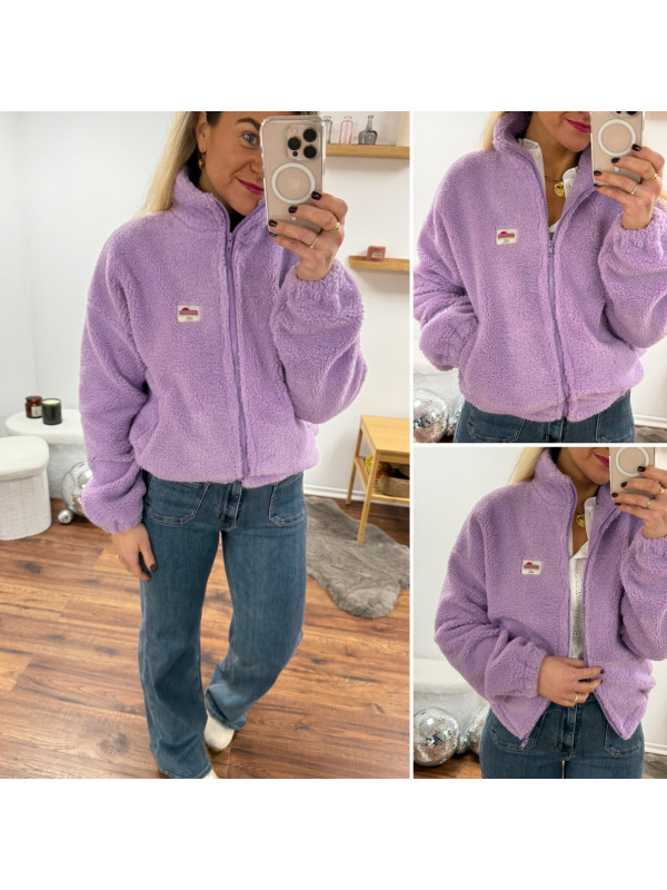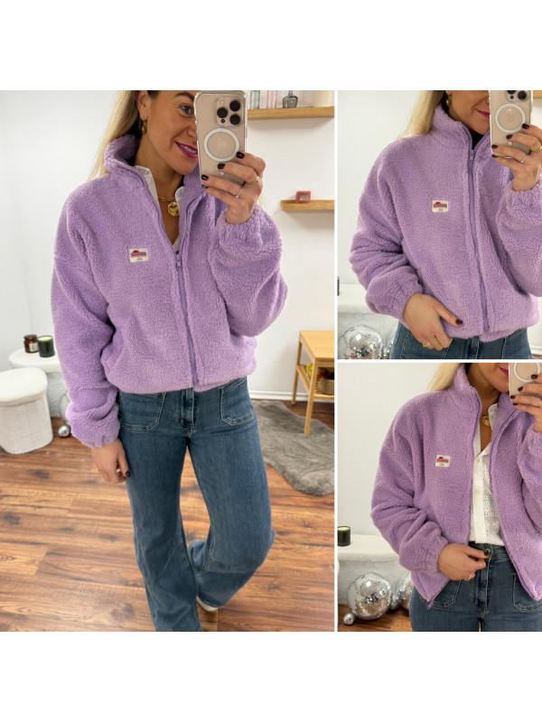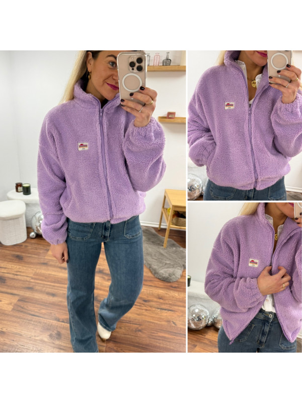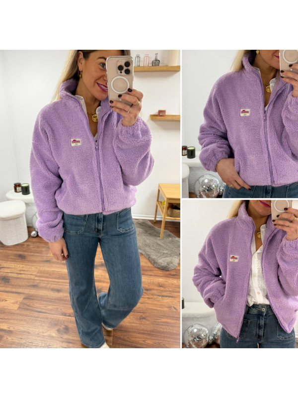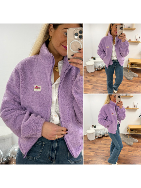 Veste polaire à bouclettes lilas avec zip et écusson "La vie est belle"