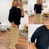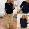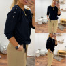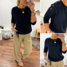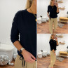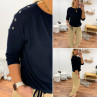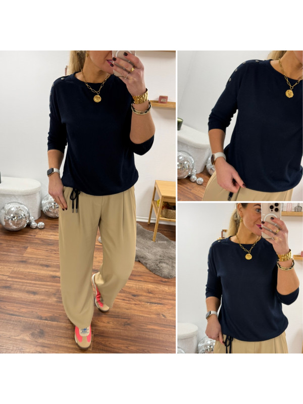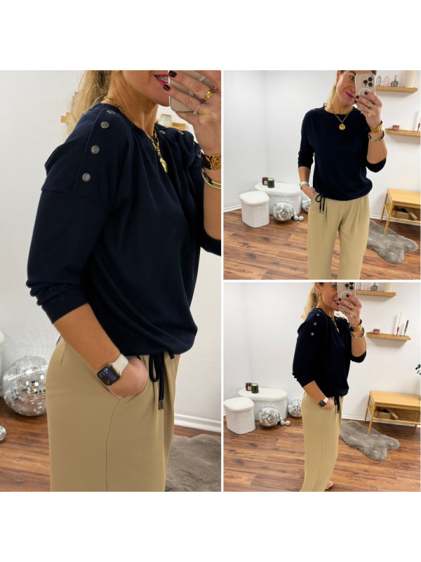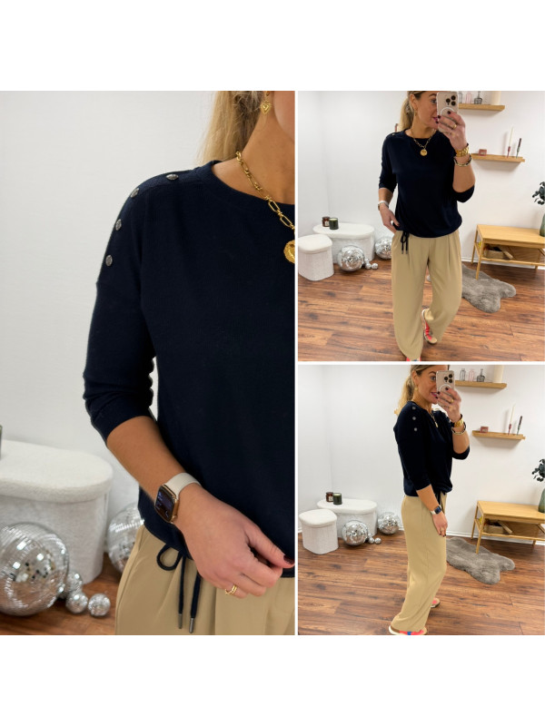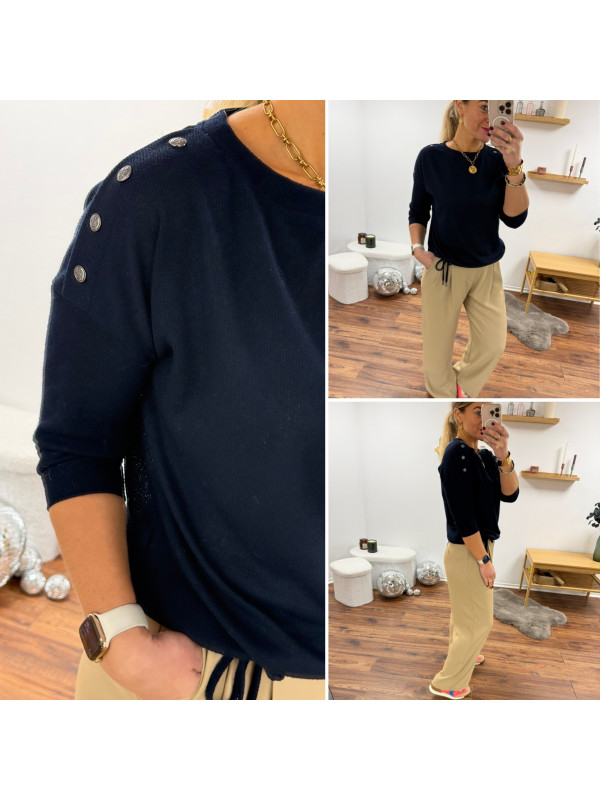 Pull fin resserré dans le bas bleu marine avec boutons argentés sur les épaules (du 36 au 46)