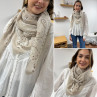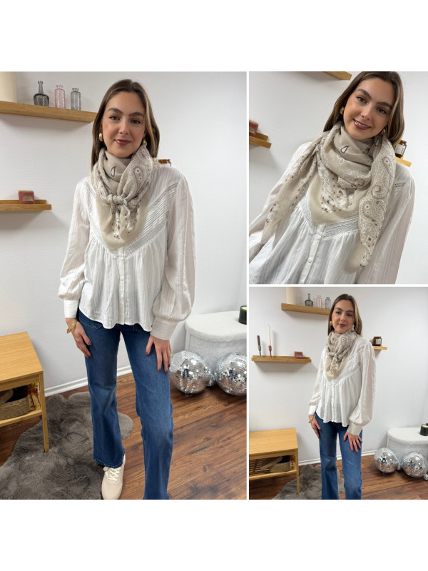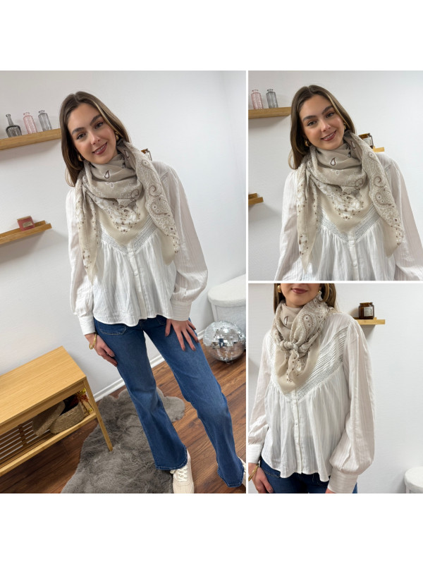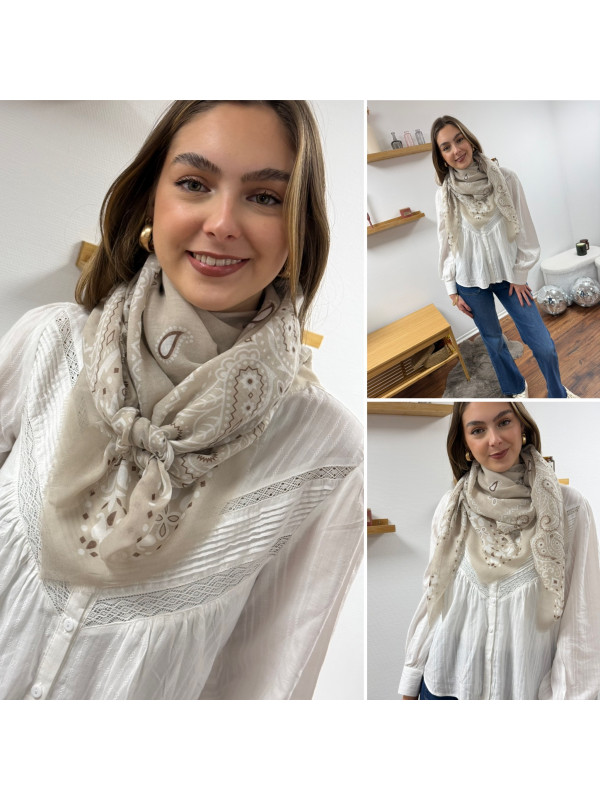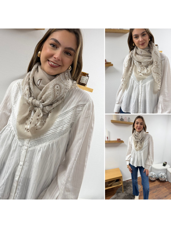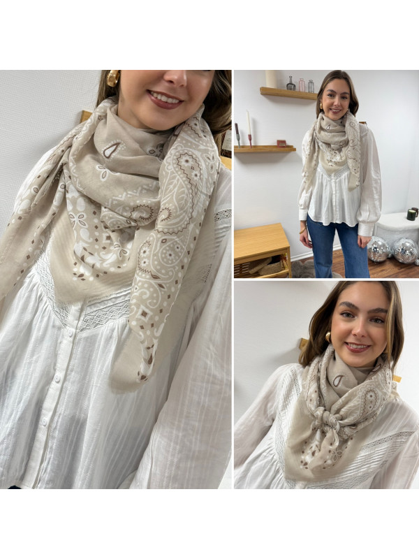 Foulard beige à motifs blancs et chocolats