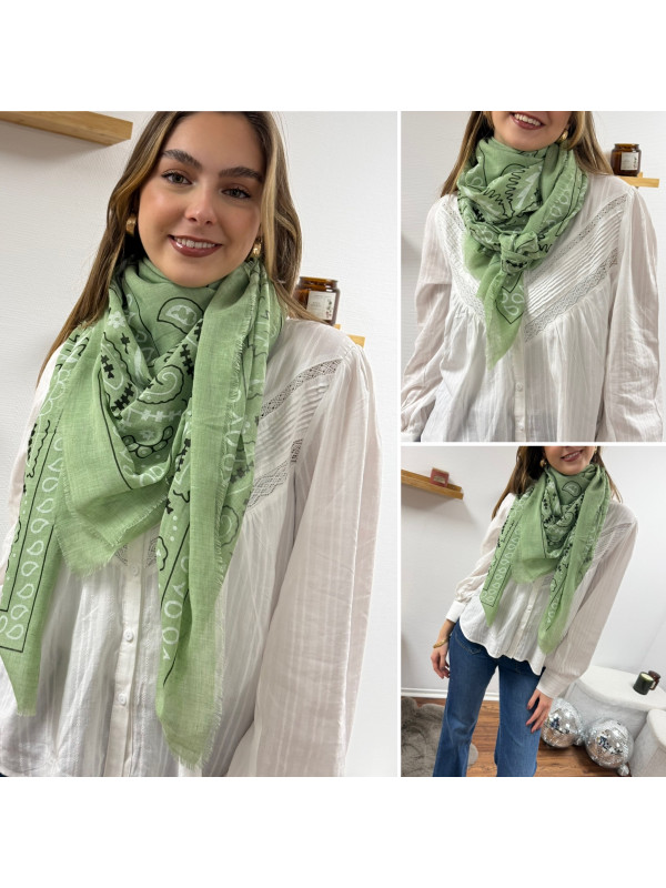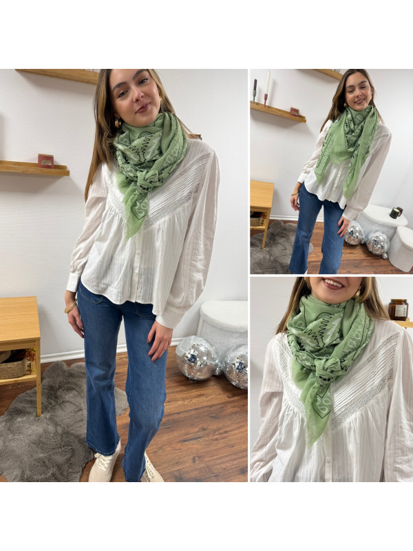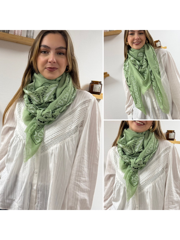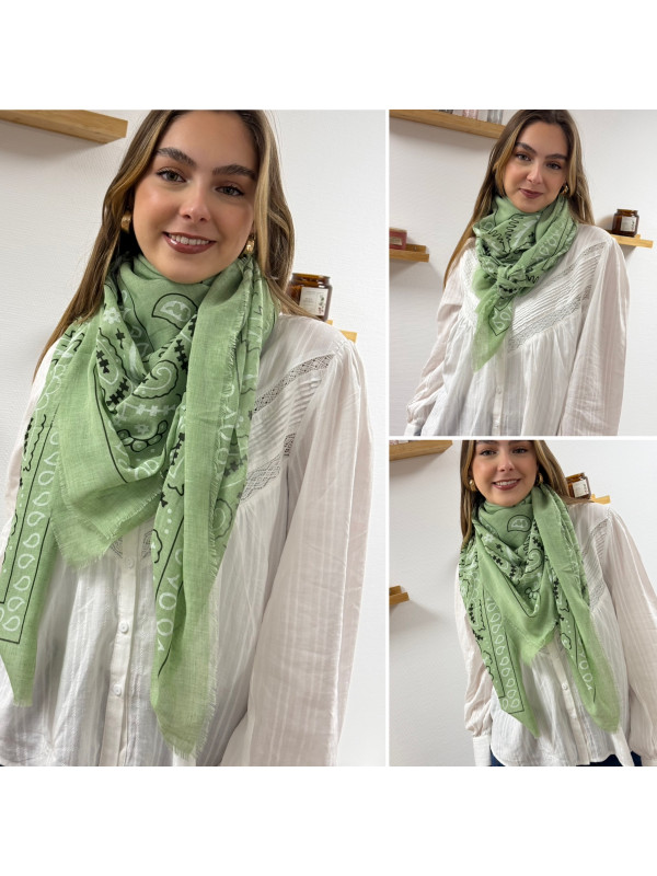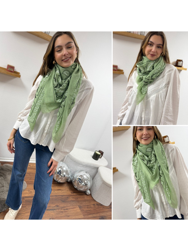 Foulard vert d'eau à motifs blancs et noirs