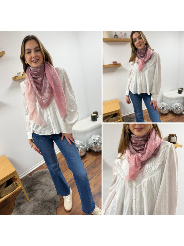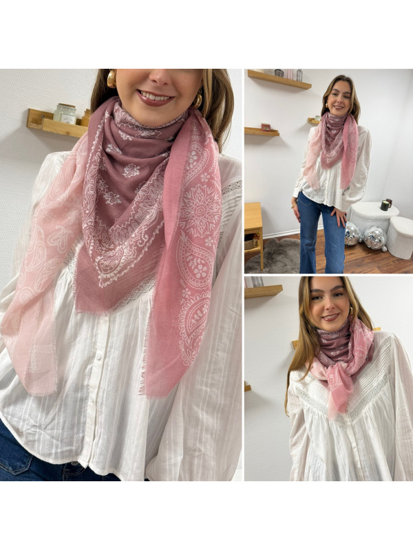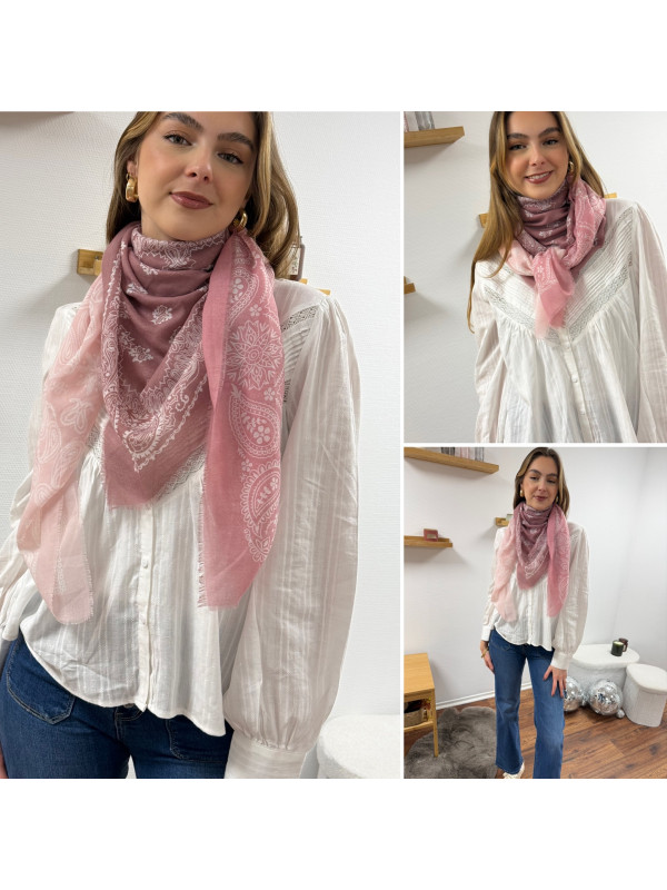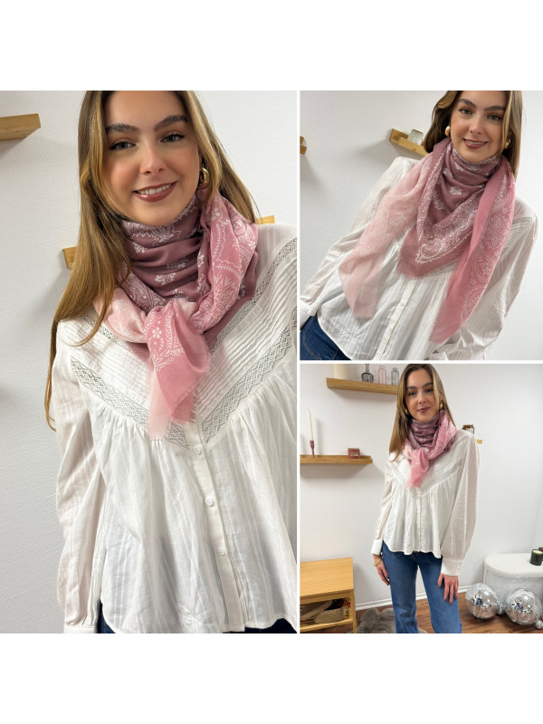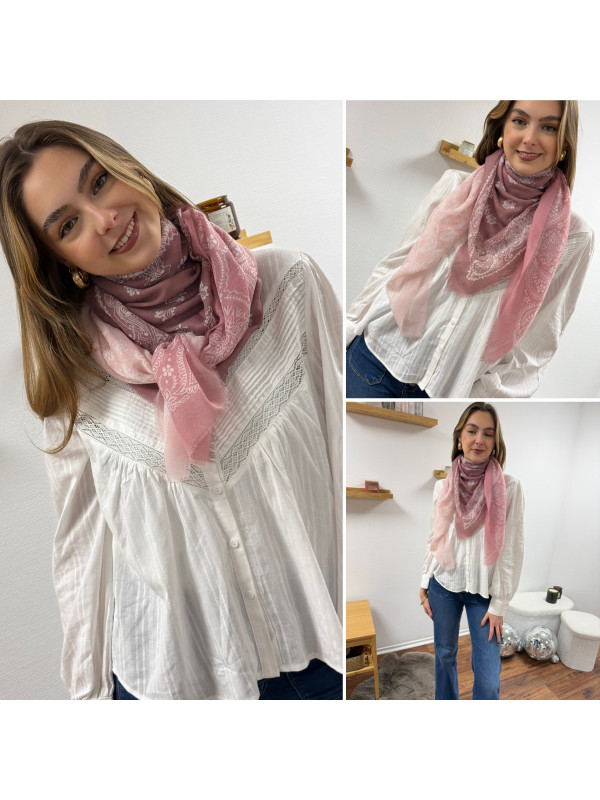 Foulard bicolore vieux rose et rose pâle à motifs blanc