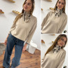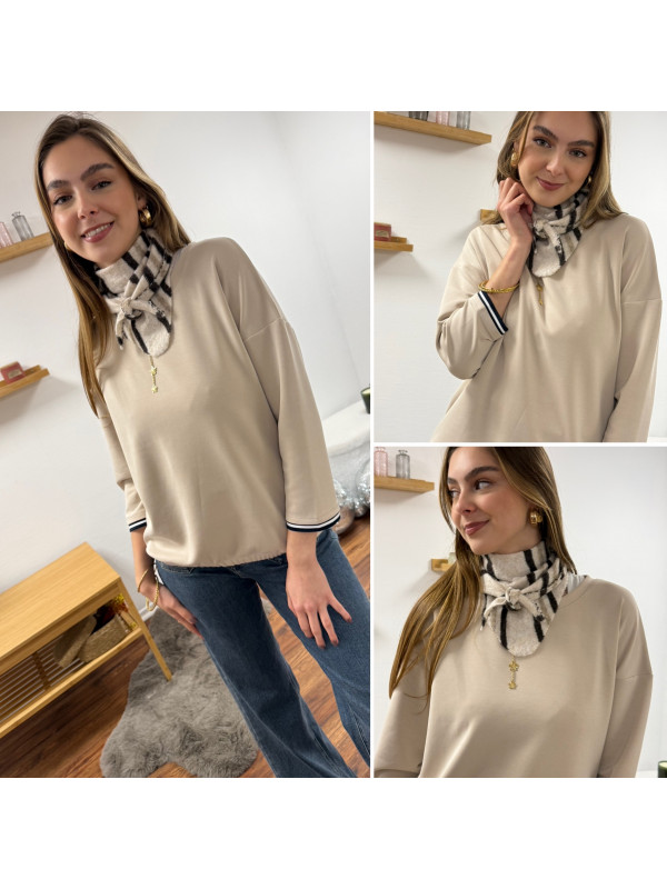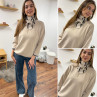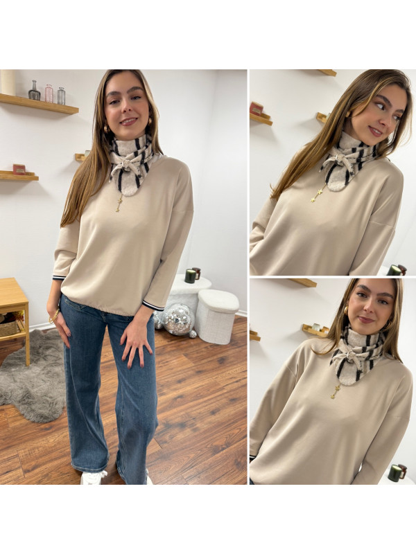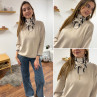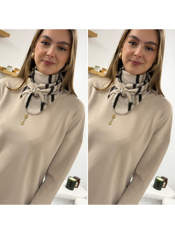 Foulard triangle en maille beige à rayures blanche et chocolat