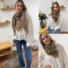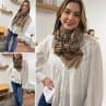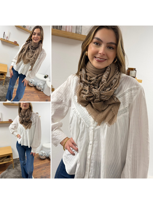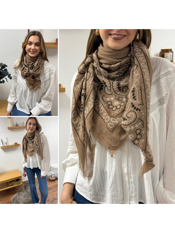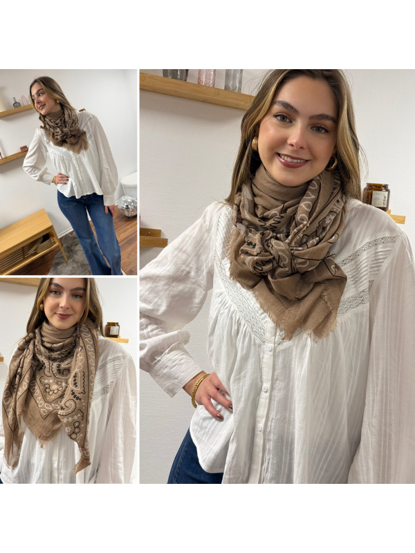 Foulard taupe à motifs blancs et noirs
