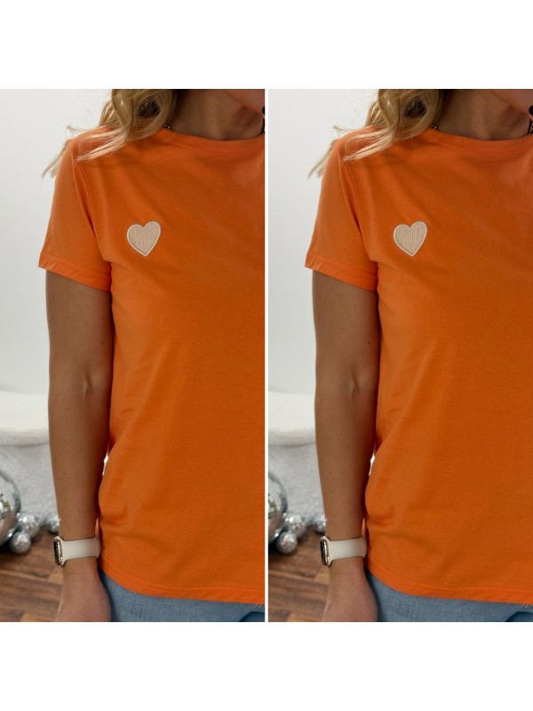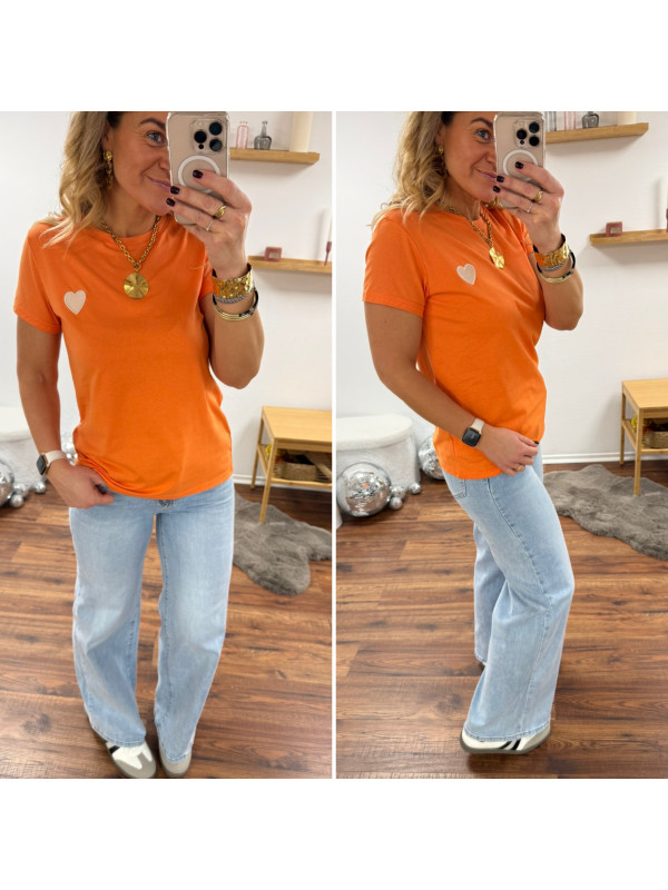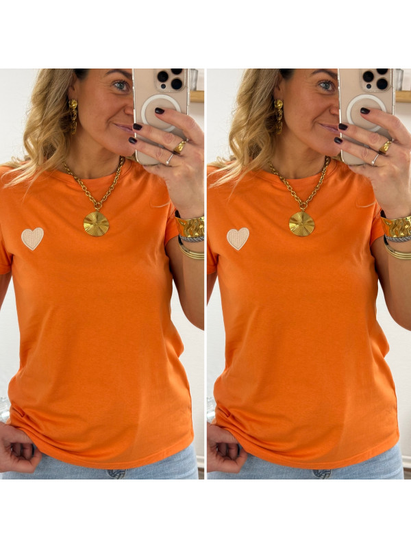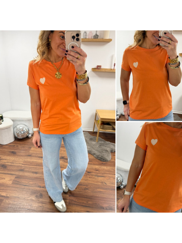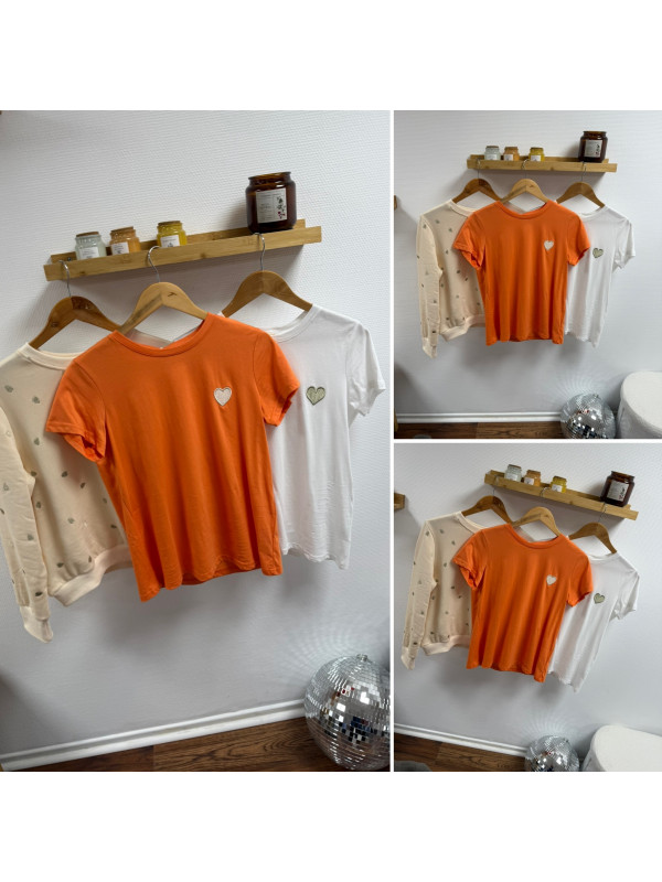 Tee shirt orange avec coeur blanc