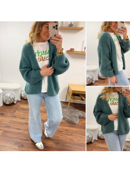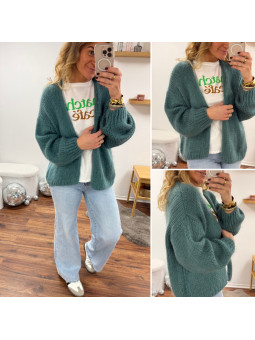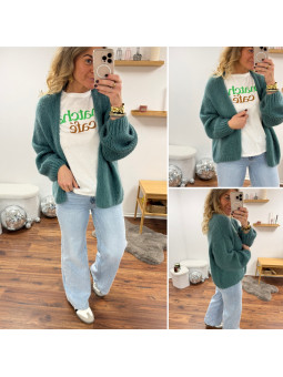 Gilet ouvert en grosse maille vert céladon Cet article en TU...