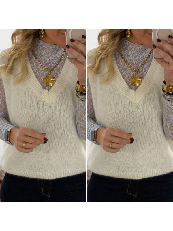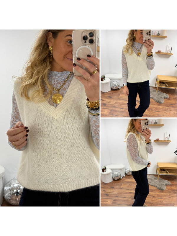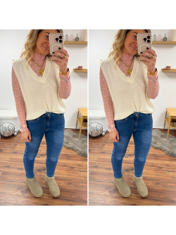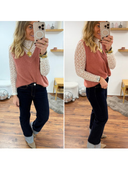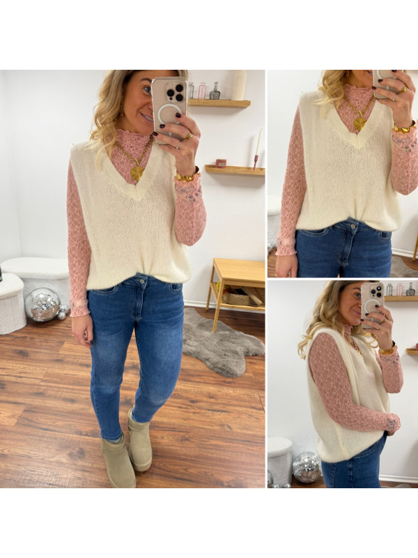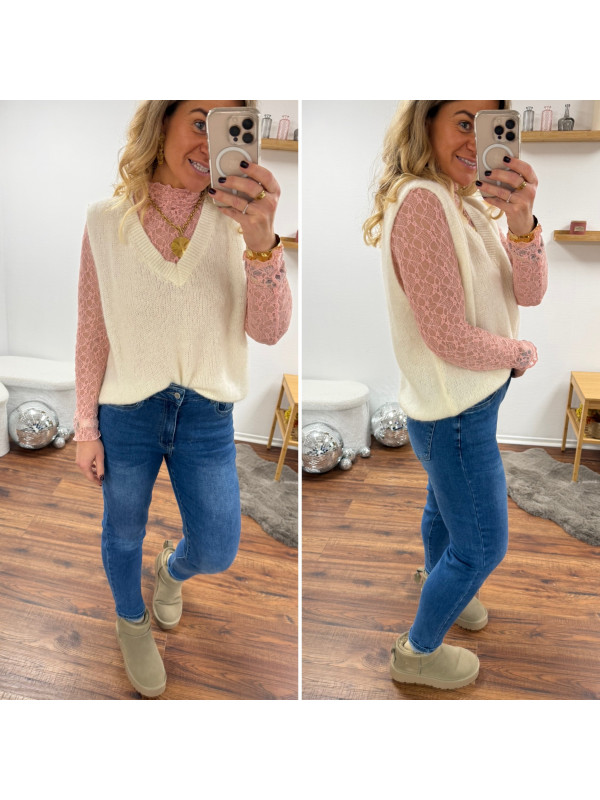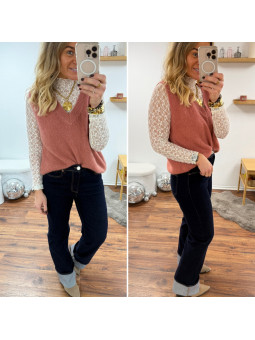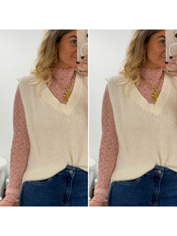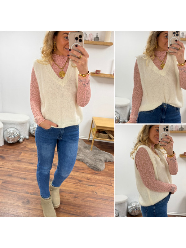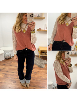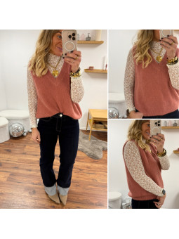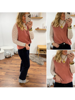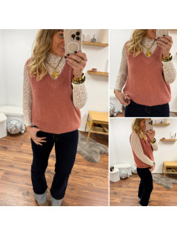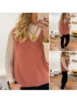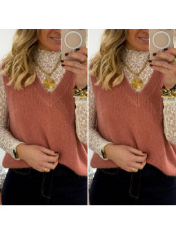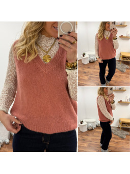 Pull sans manches col V vieux rose en mohair Cet article en TU...
