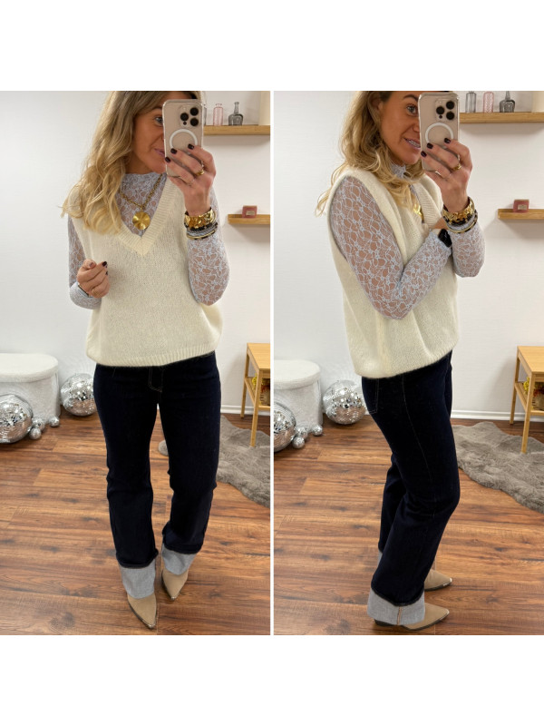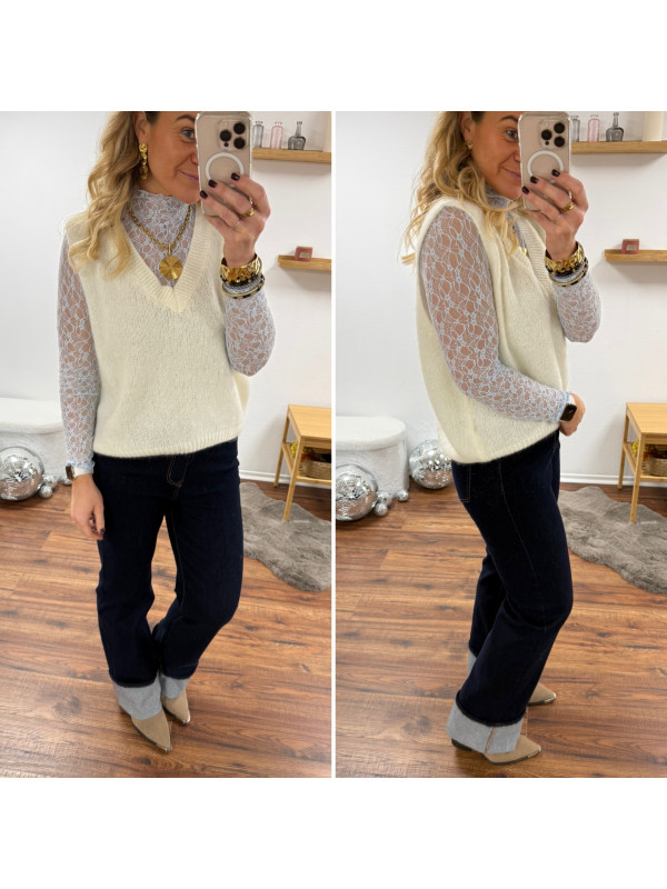 Blouse moulante en dentelle blanche Le SM équivaut au 36-38,...