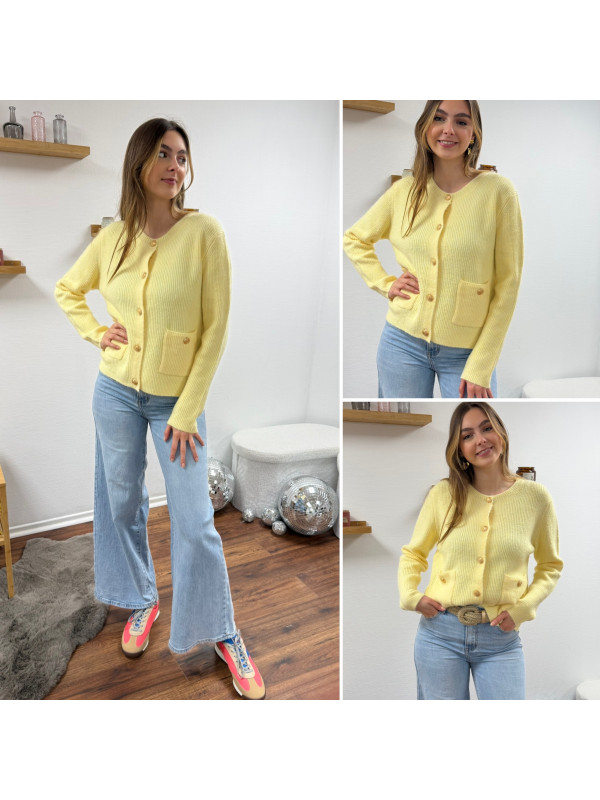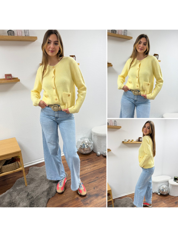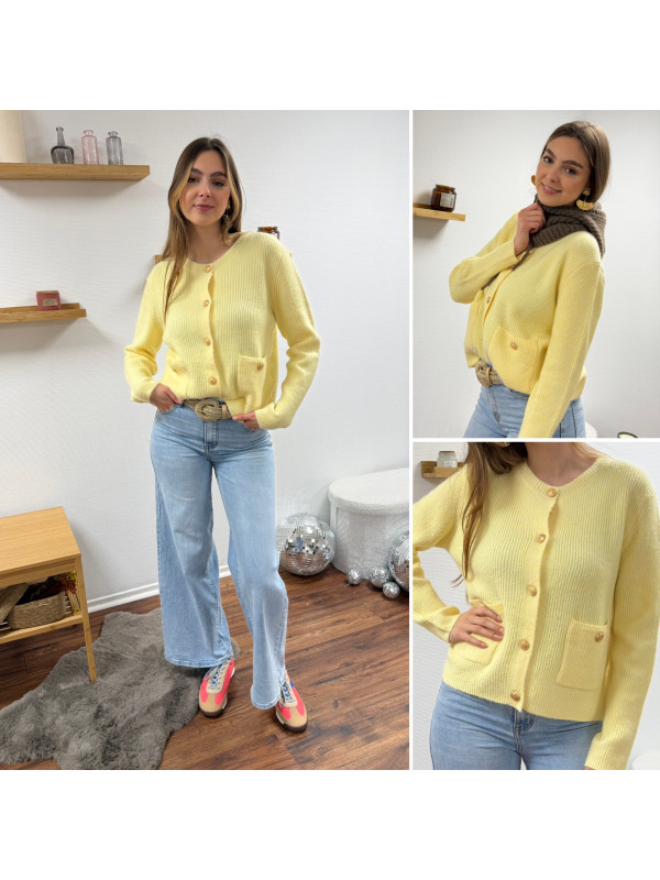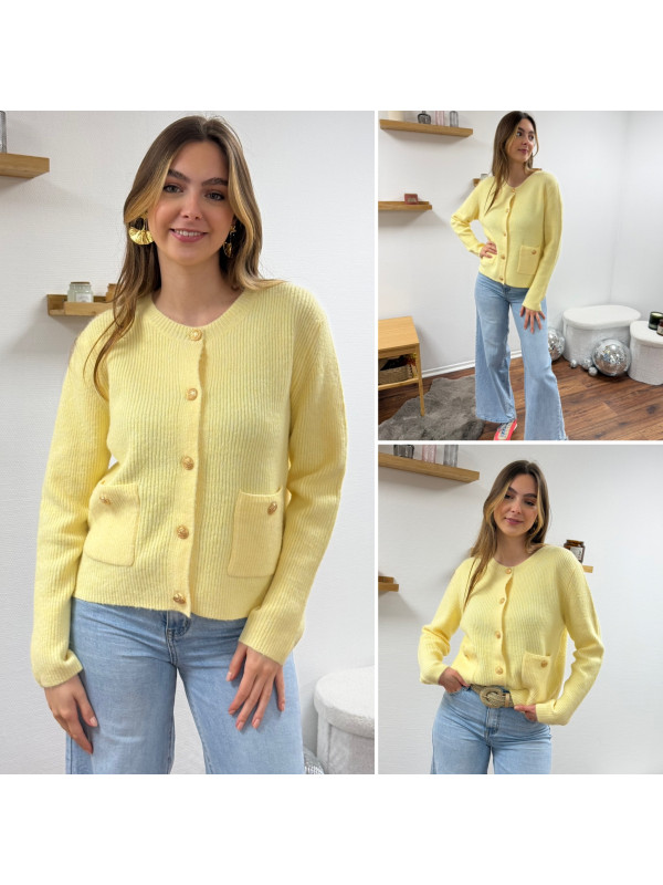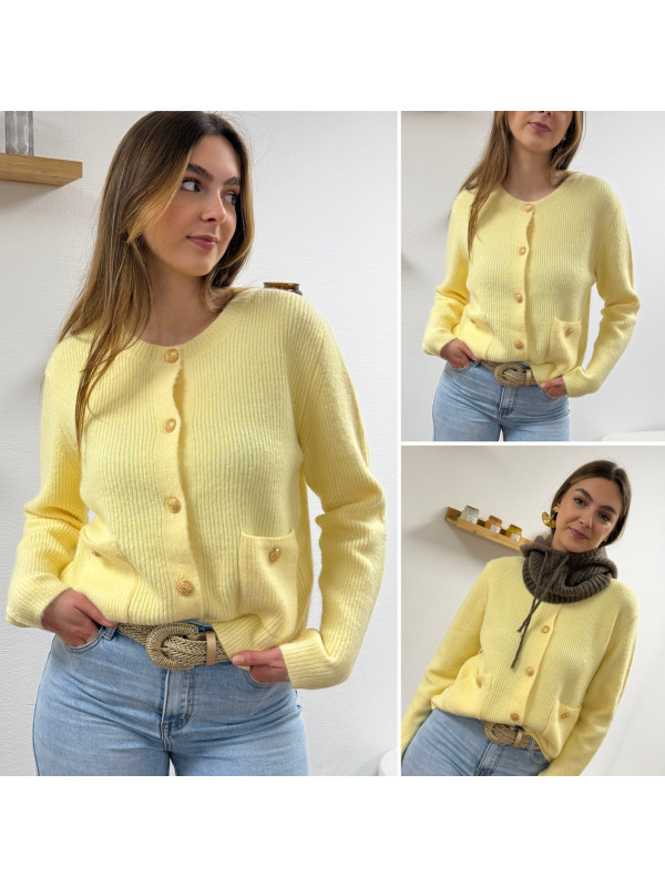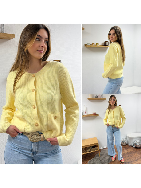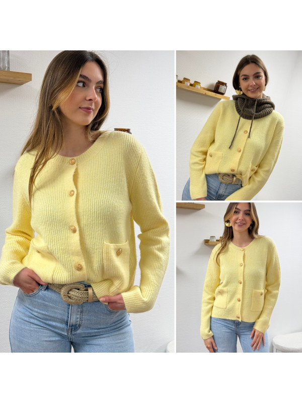 Gilet jaune pâle avec poches plaquées et boutons dorés