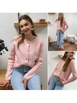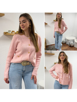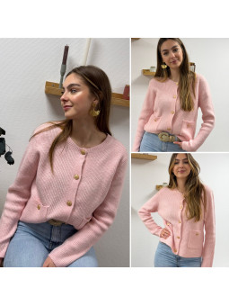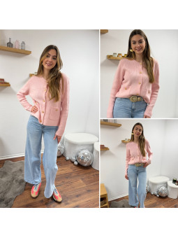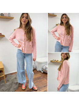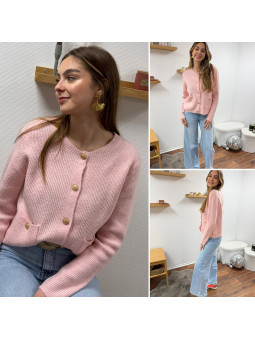 Gilet rose avec poches plaquées et boutons dorés Cet article...