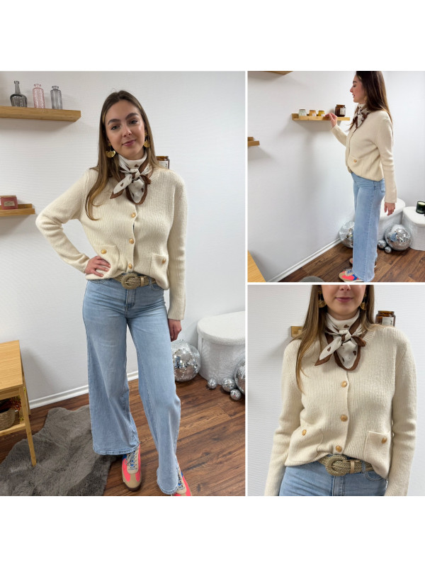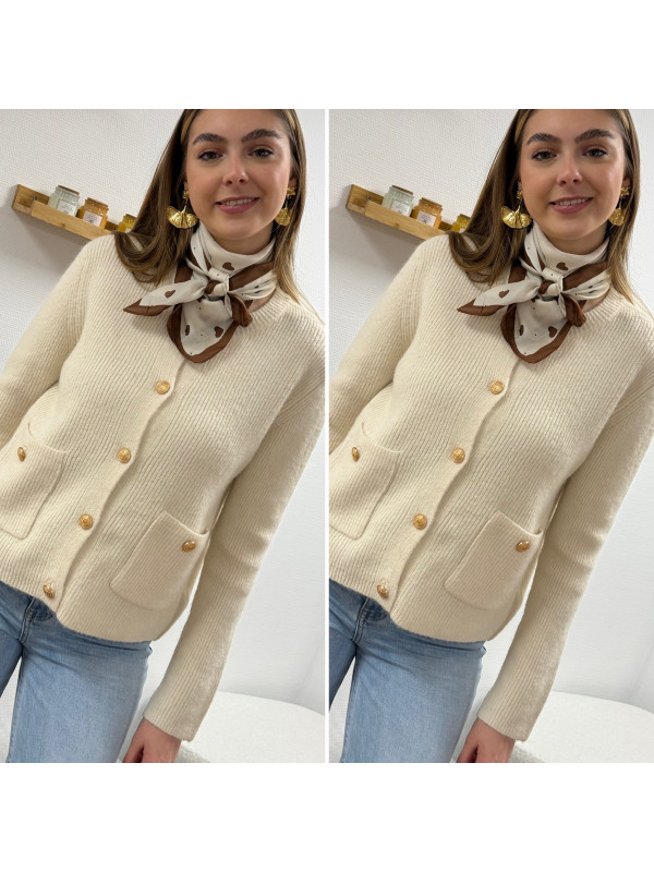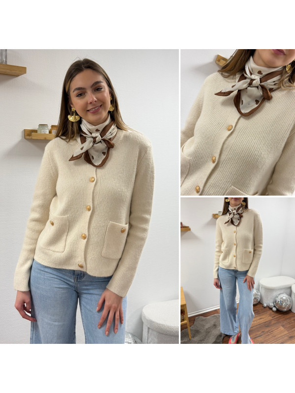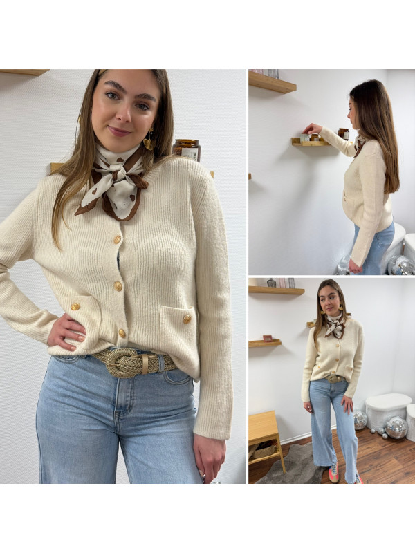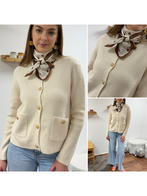 Gilet écru avec poches plaquées et boutons dorés Cet article...