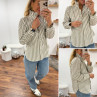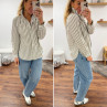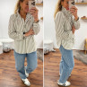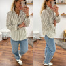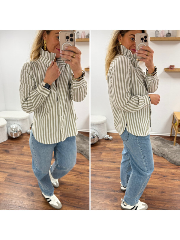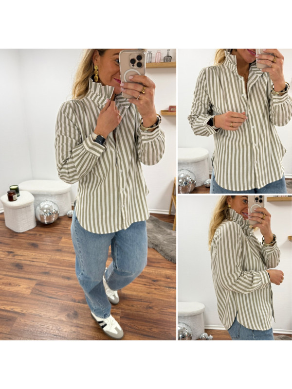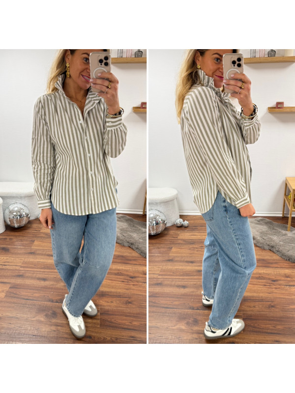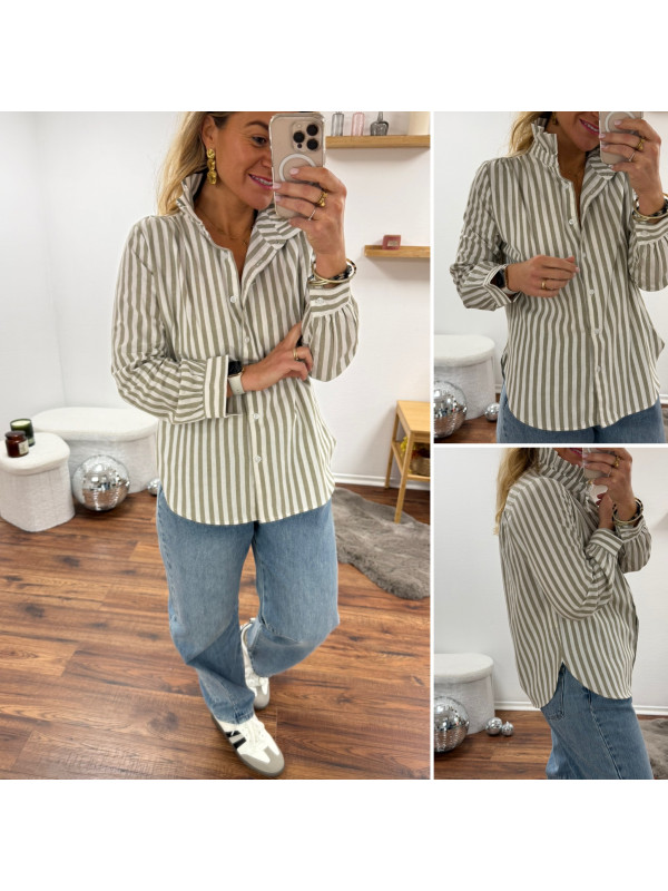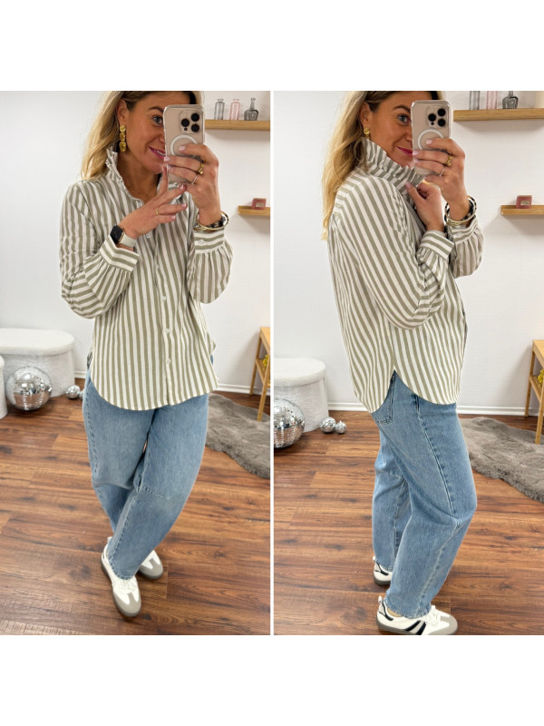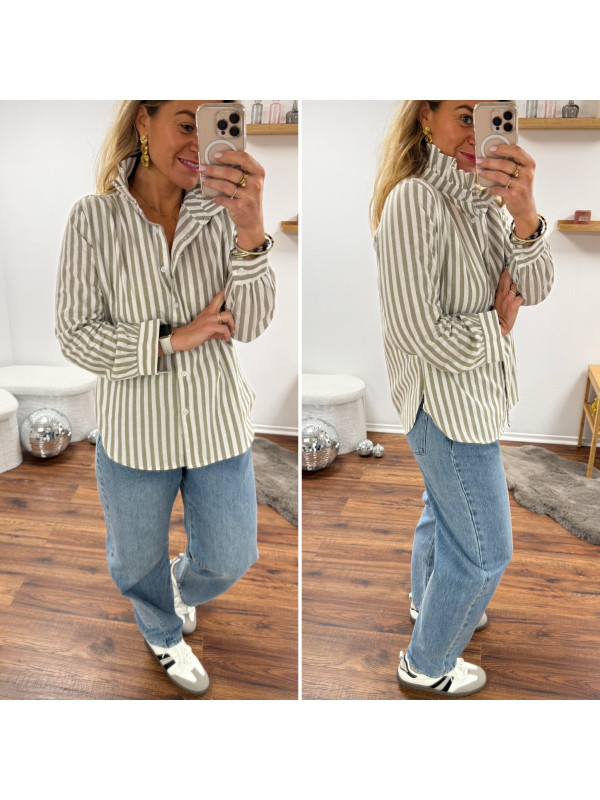 Chemise à rayures blanches et kakis avec col volant