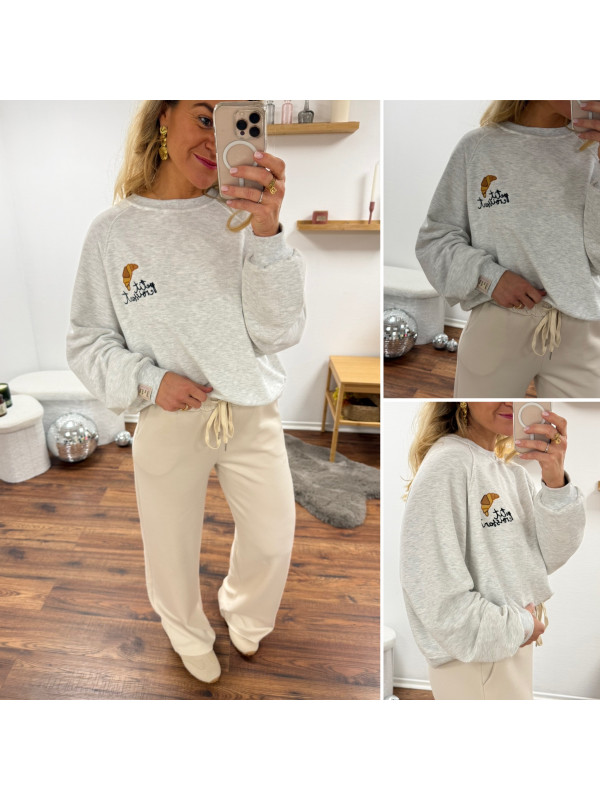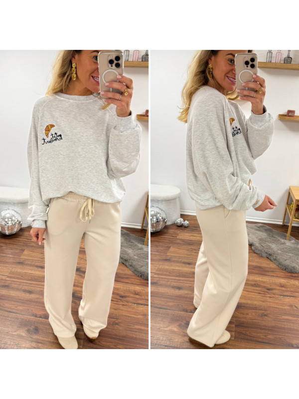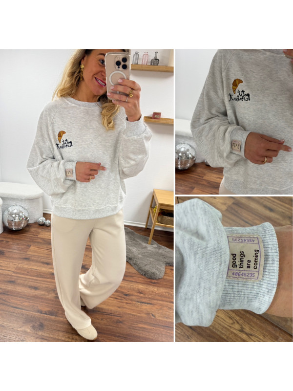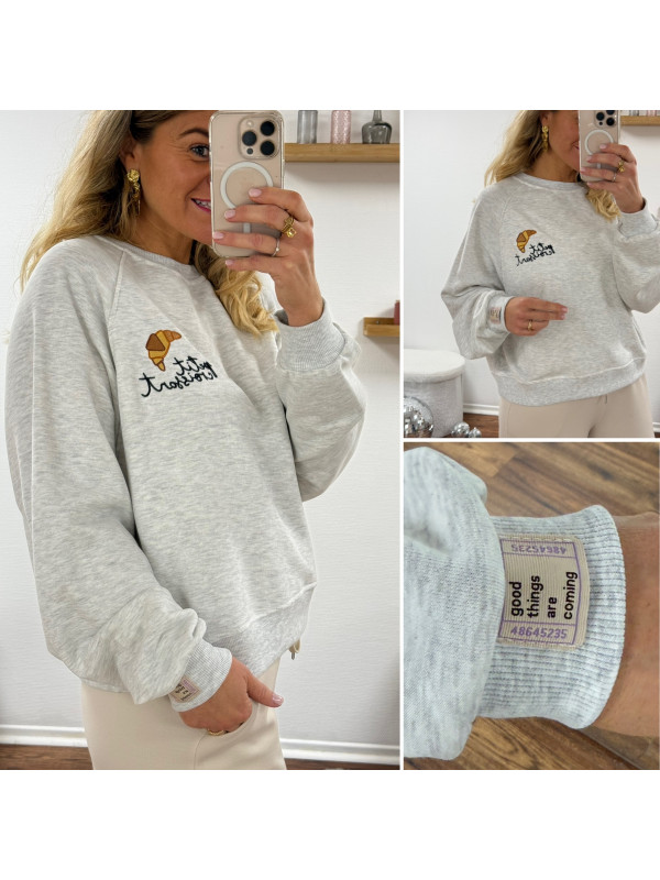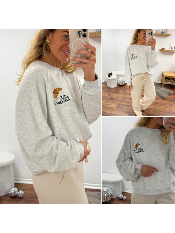 Sweat gris avec dessin et inscription petit croissant