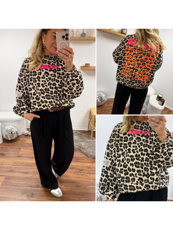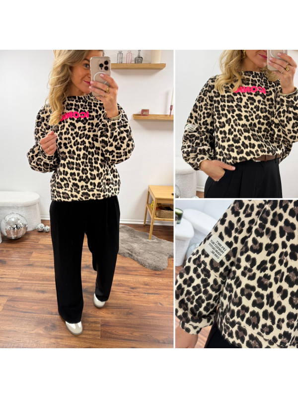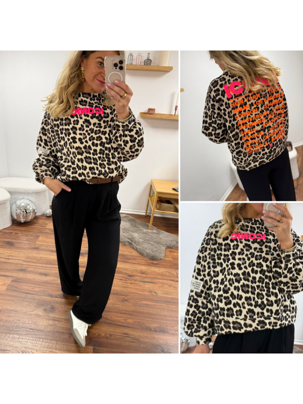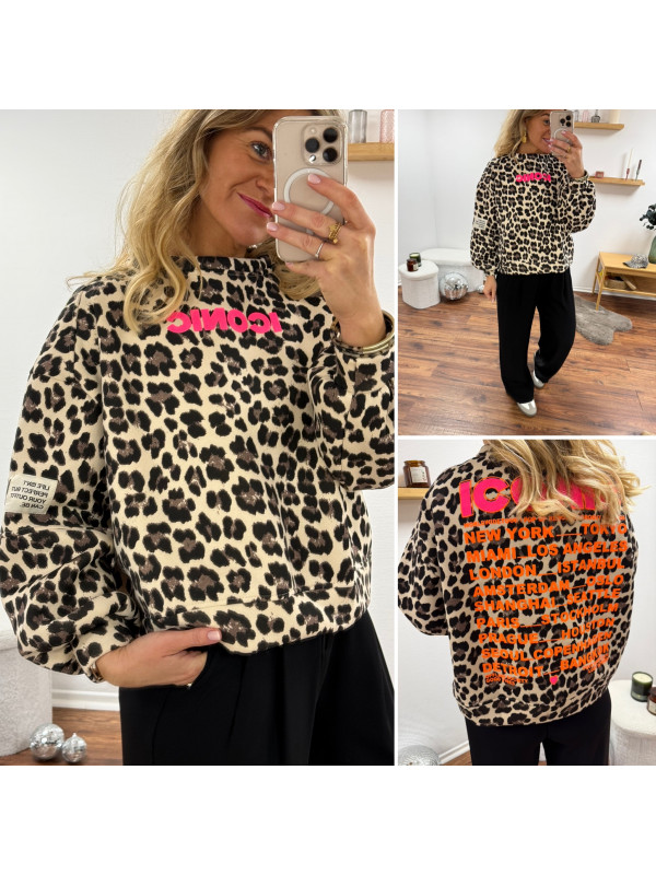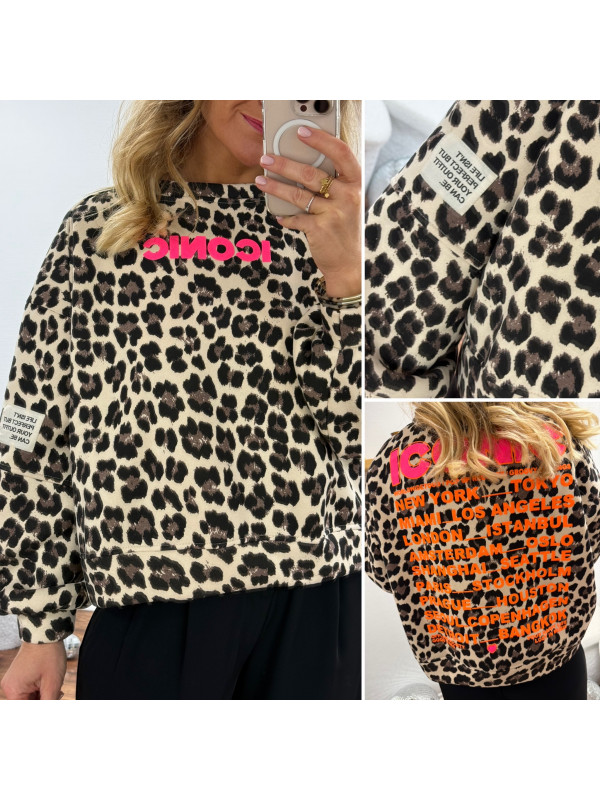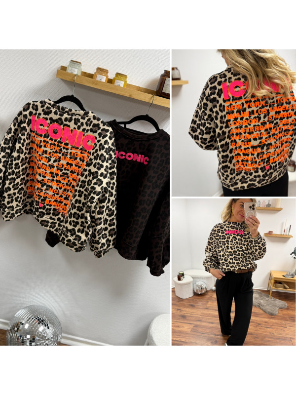 Sweat léopard beige"iconic" avec flap sur le bras "life isn't perfect but your outfit can be"