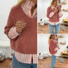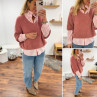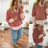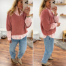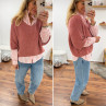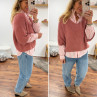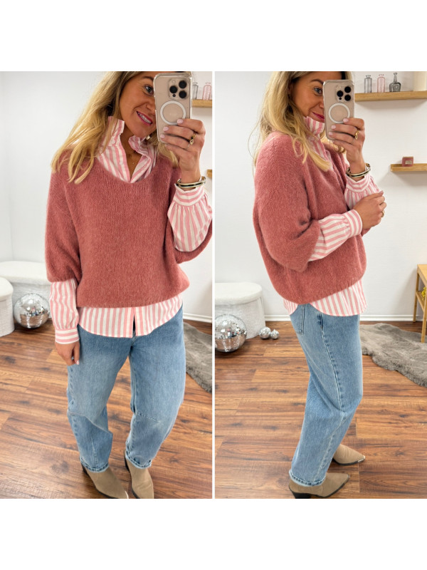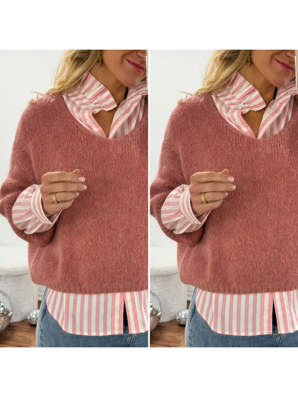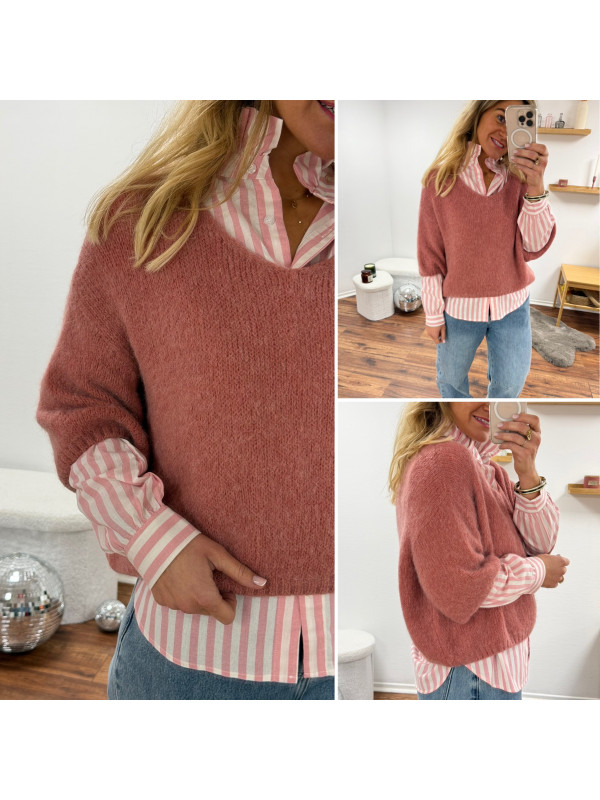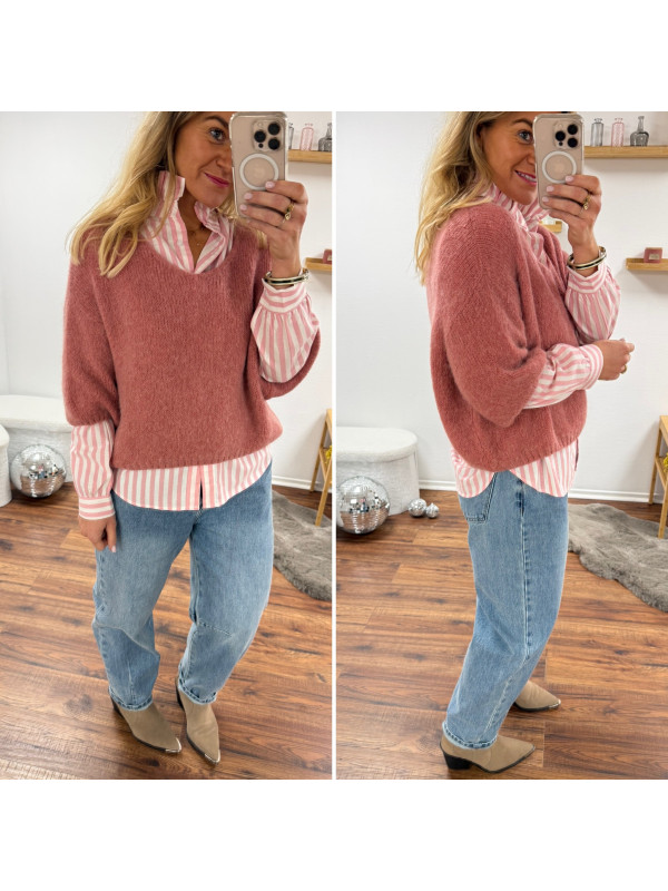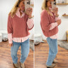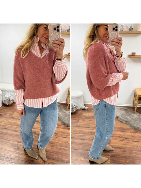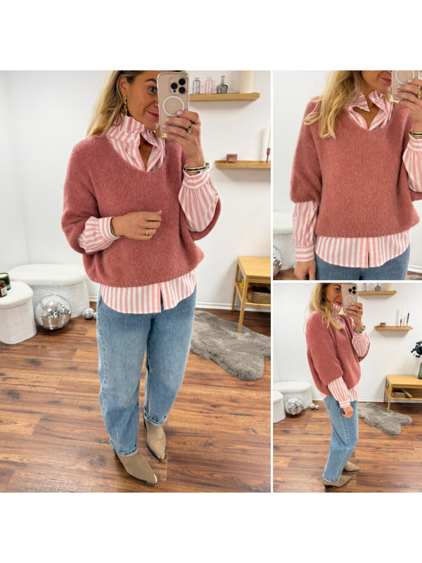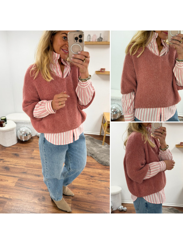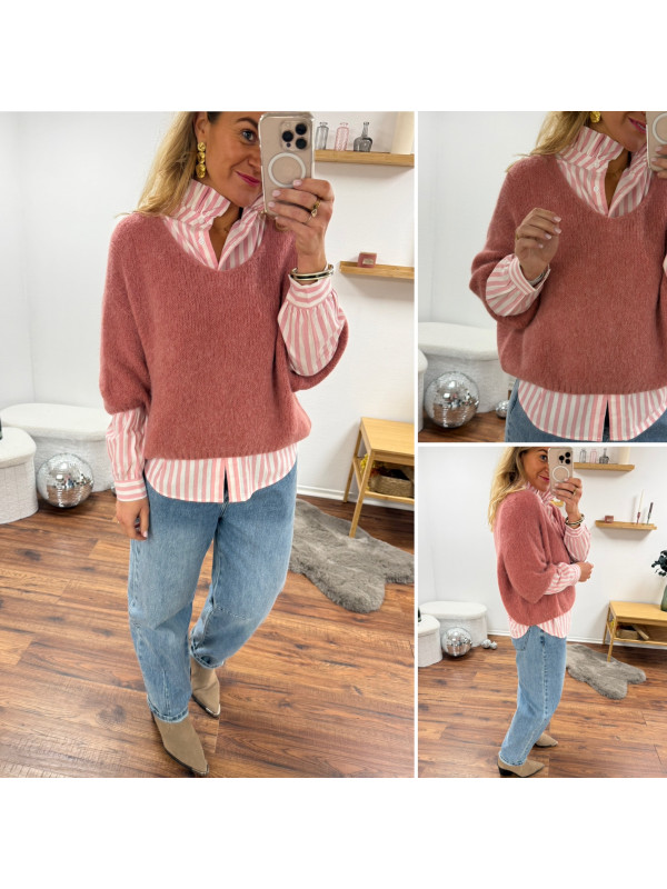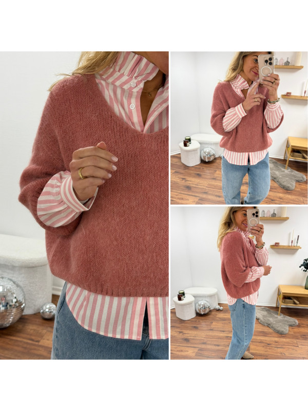 Pull manches 3/4 col V en alpaga vieux rose