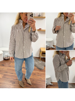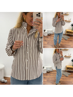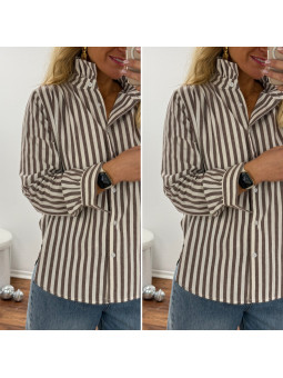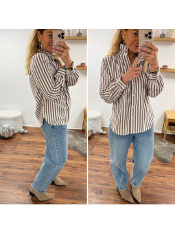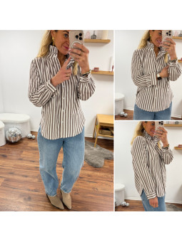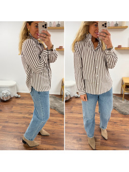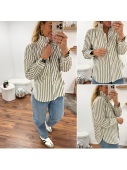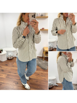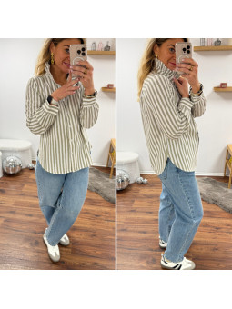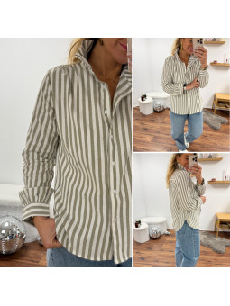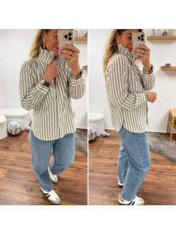 Chemise à rayures blanches et kakis avec col volant Le SM...