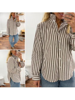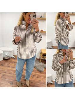 Chemise à rayures blanches et chocolats avec col volant Le SM...