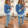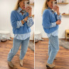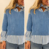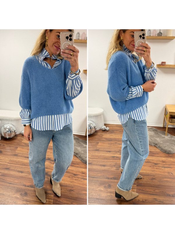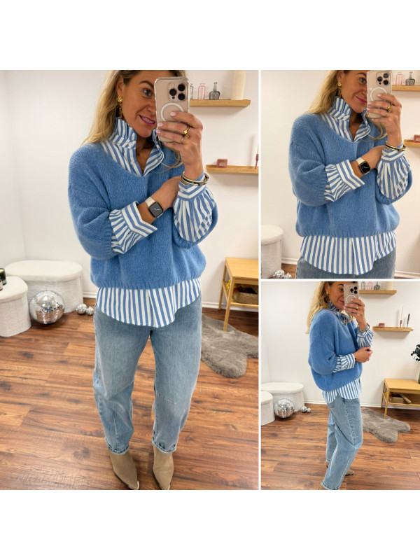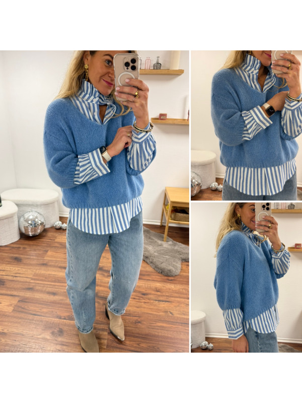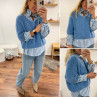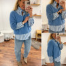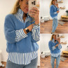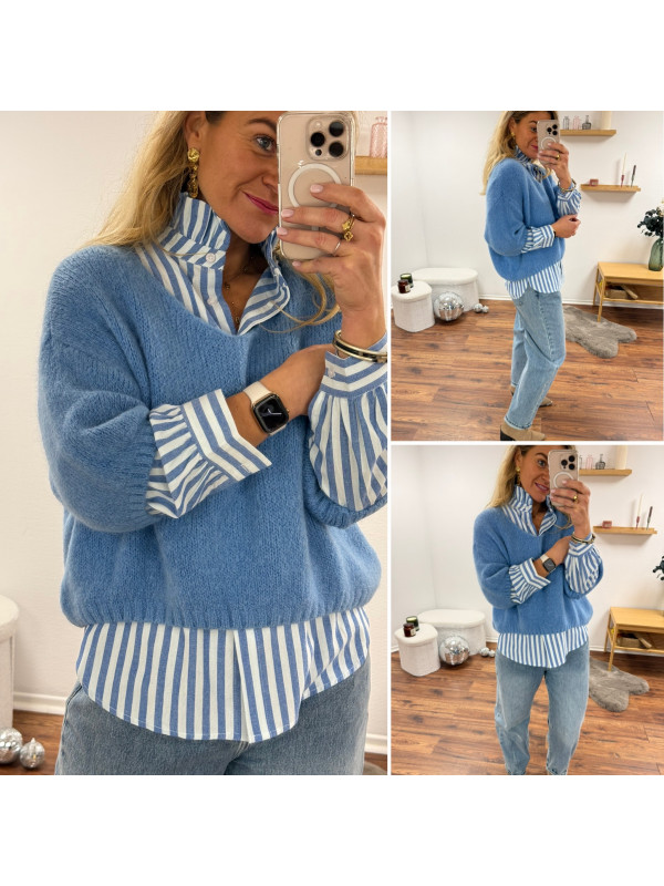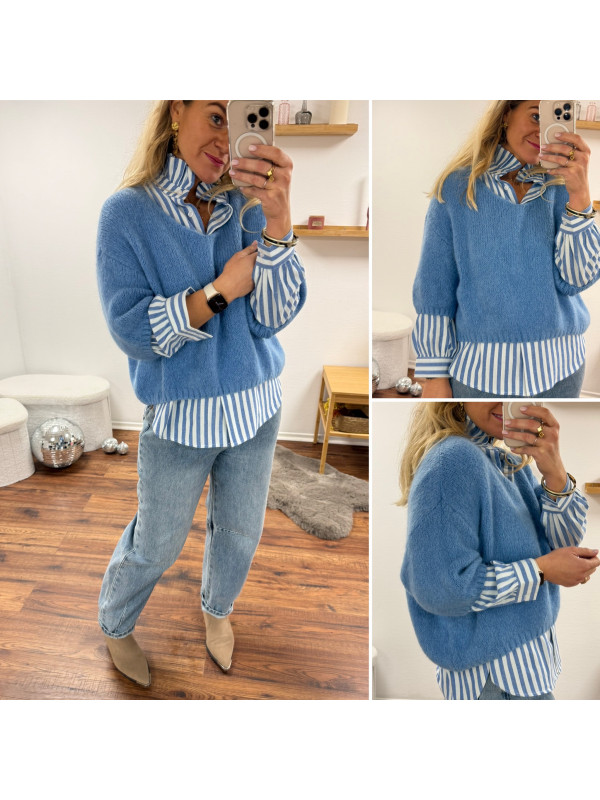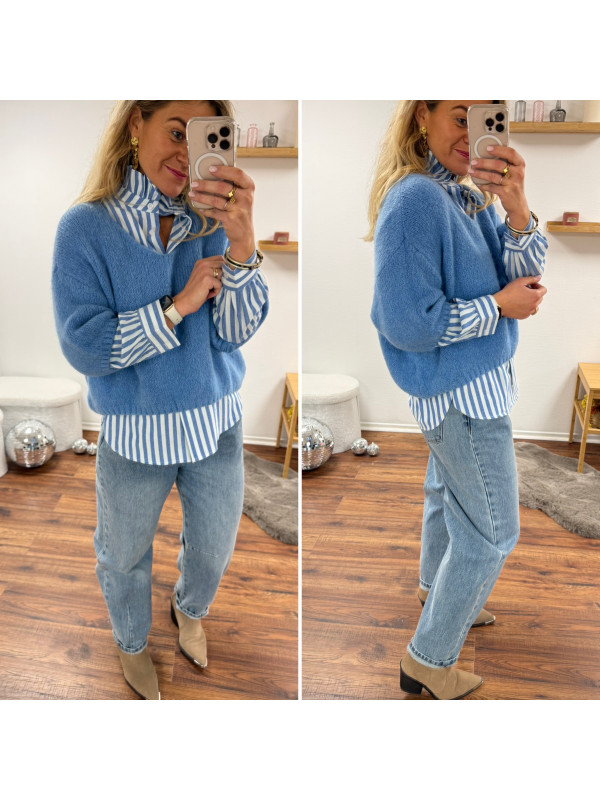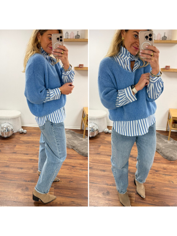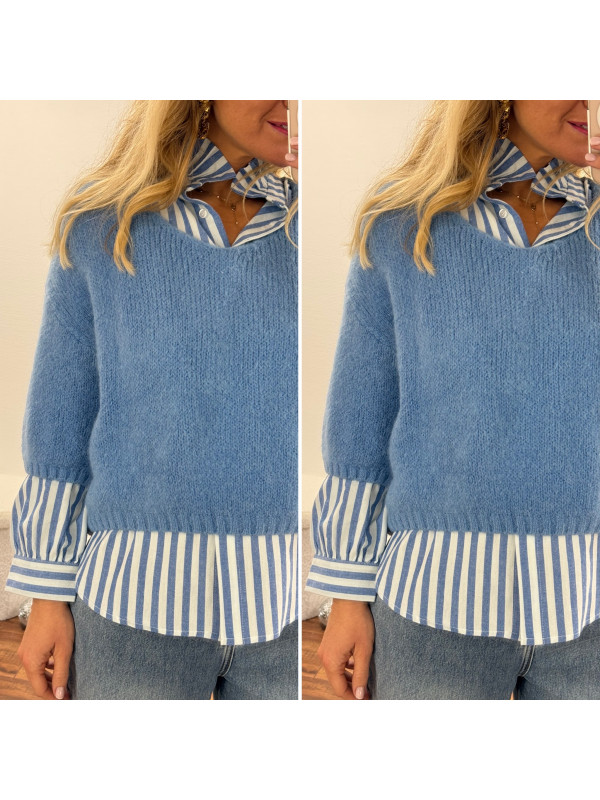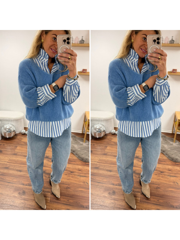 Chemise à rayures blanches et bleues avec col volant Le SM...