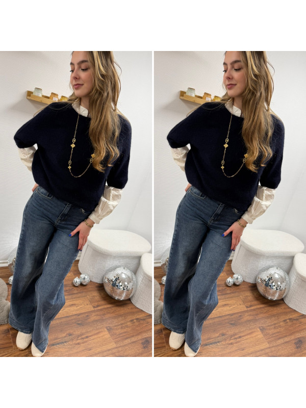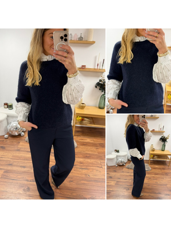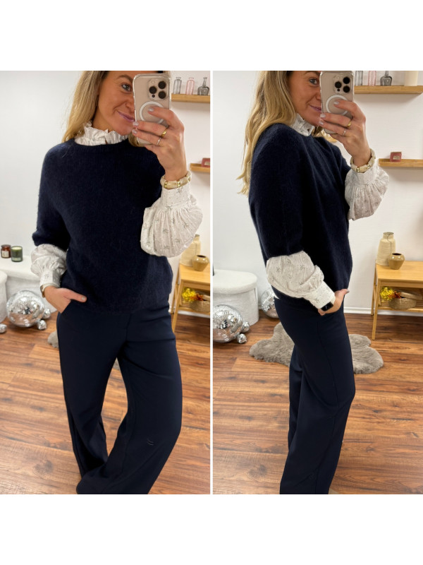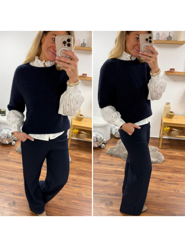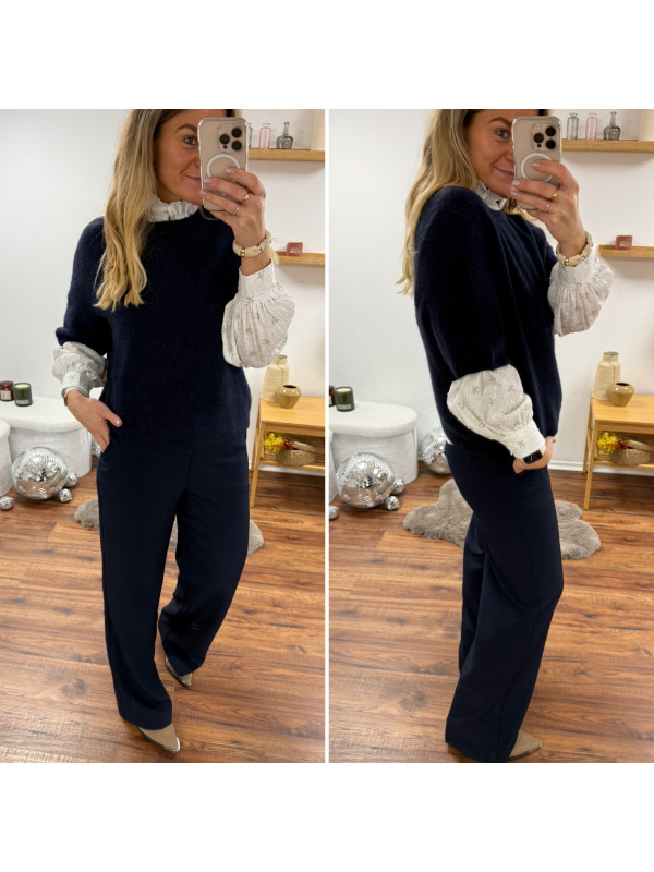 Pantalon fluide droit bleu marine Le S équivaut au 36, le M au...
