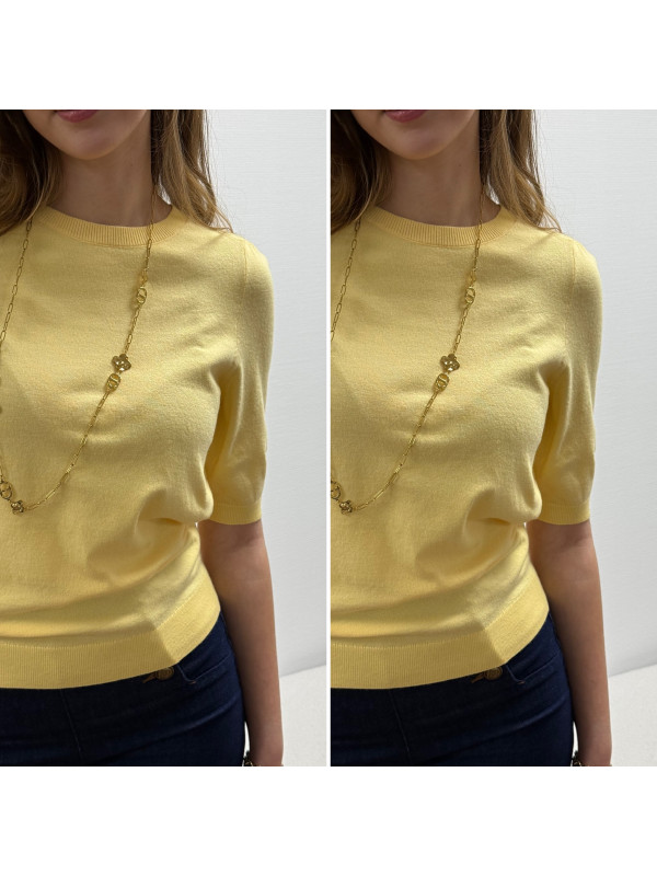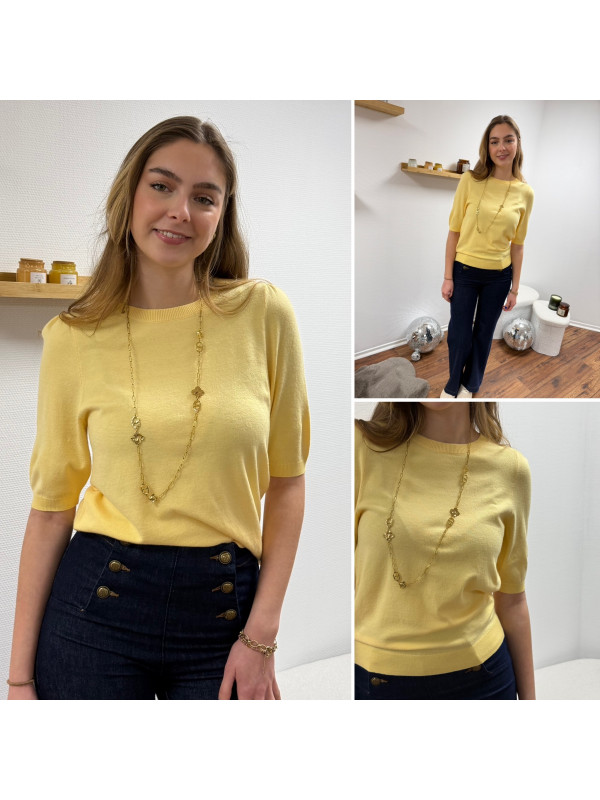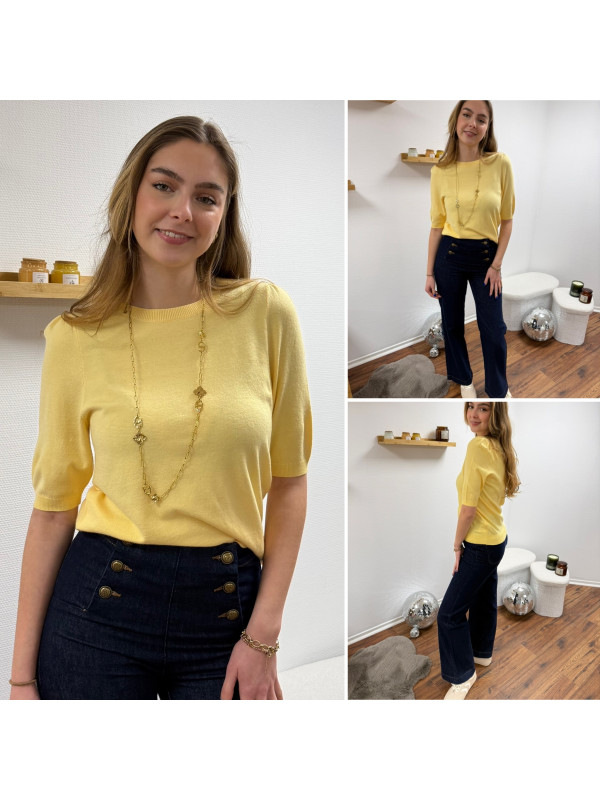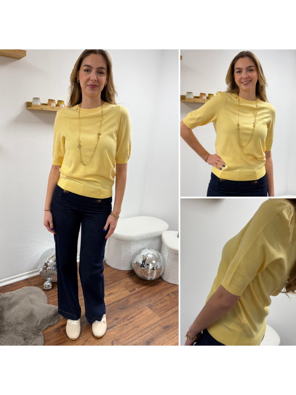 Pull en fines mailles à manches courtes jaune (du 36 au 46)