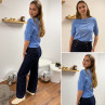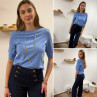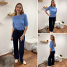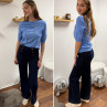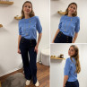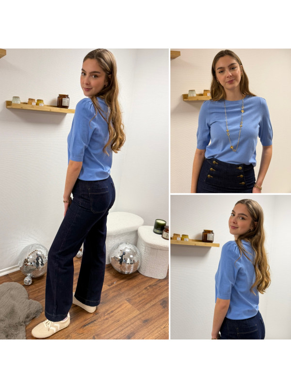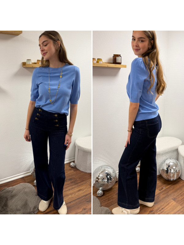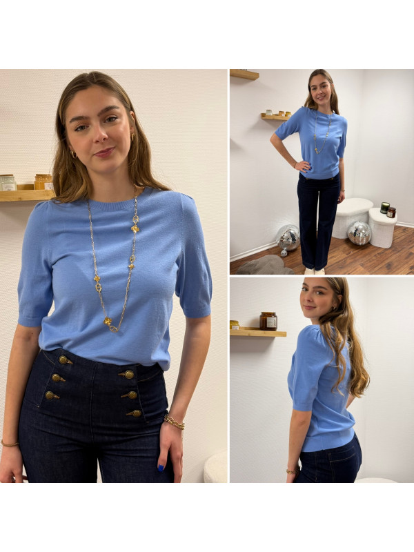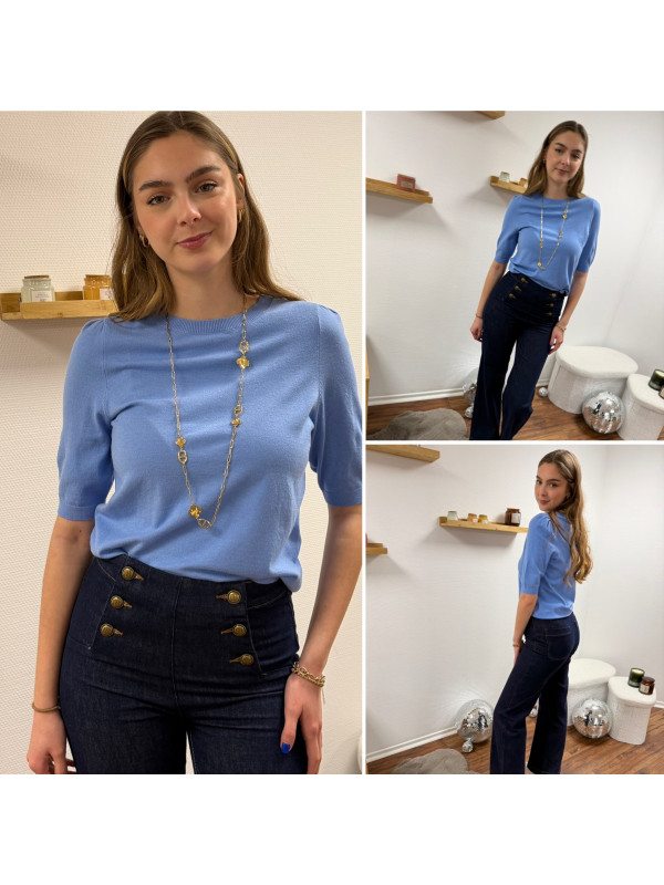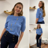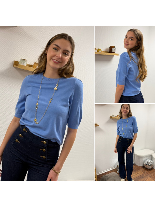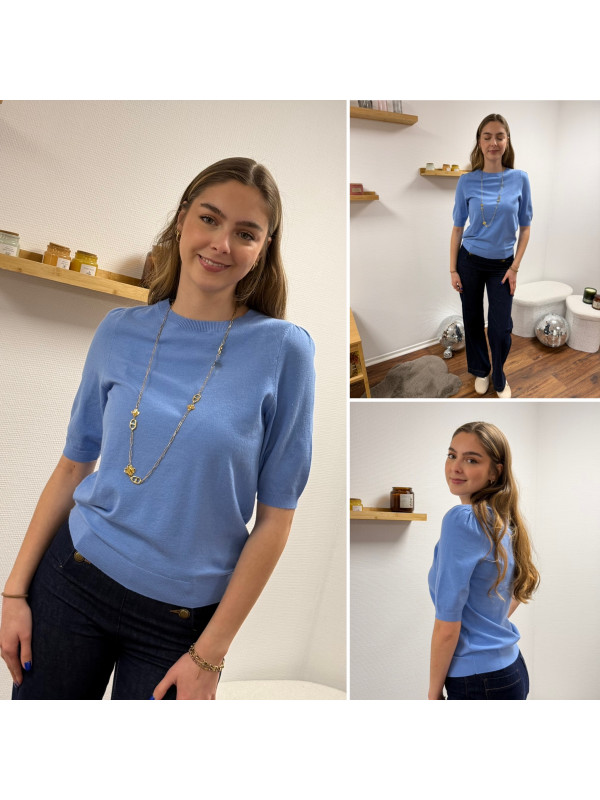 Pull en fines mailles à manches courtes bleu jeans (du 36 au 46)