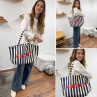 Tote bag en tissu épais à rayures blanches et vert olive et...