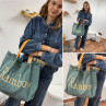 Sac cabas à franges bleu jeans avec écriture Rainbow doré...