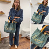 Sac cabas à franges beige avec écriture Poésie doré 10% pelle...