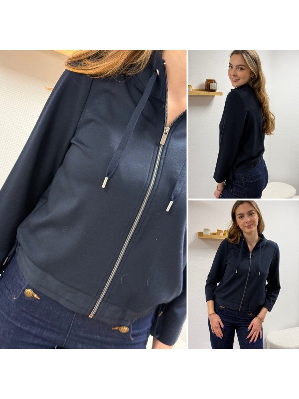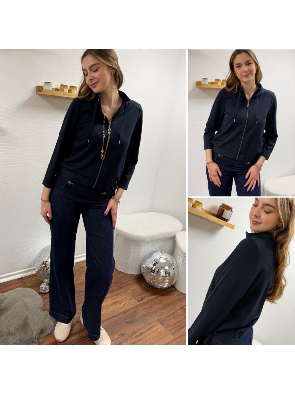 Gilet façon sweat bleu marine avec col légèrement montant (du 36 au 46)