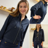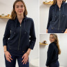 Gilet façon sweat bleu marine avec col légèrement montant et liens pour le nouer sur les cotés (du 36 au 46)