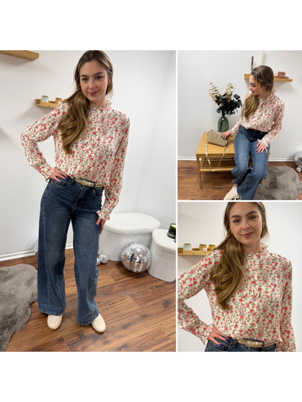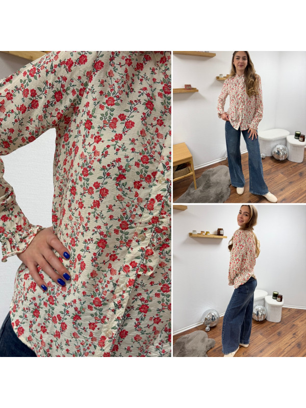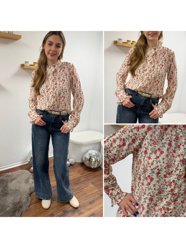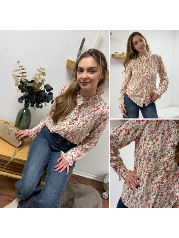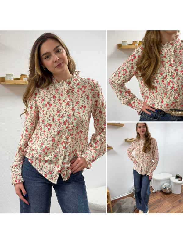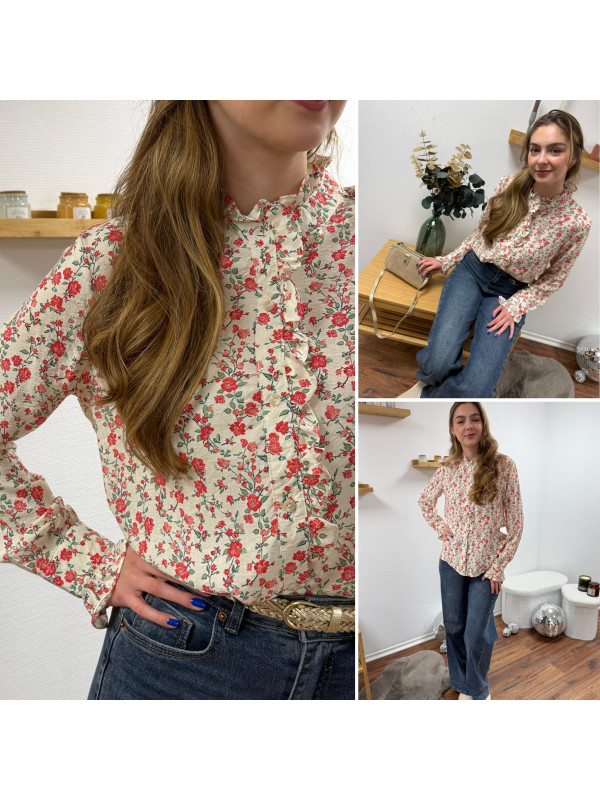 Chemise avec fleurs rouges et col volant
