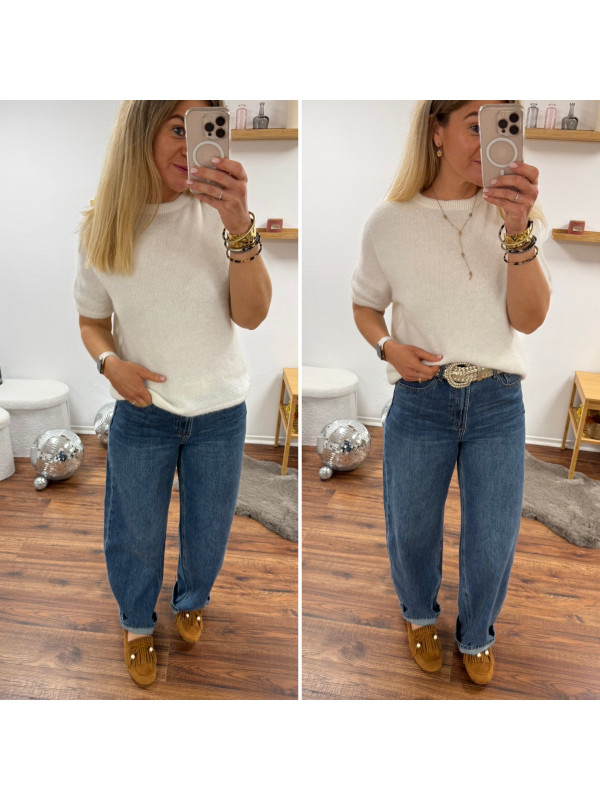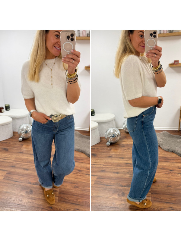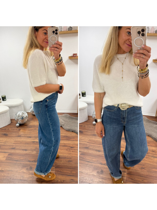 Pull à manches courtes en alpaga bleu marine Cet article en...