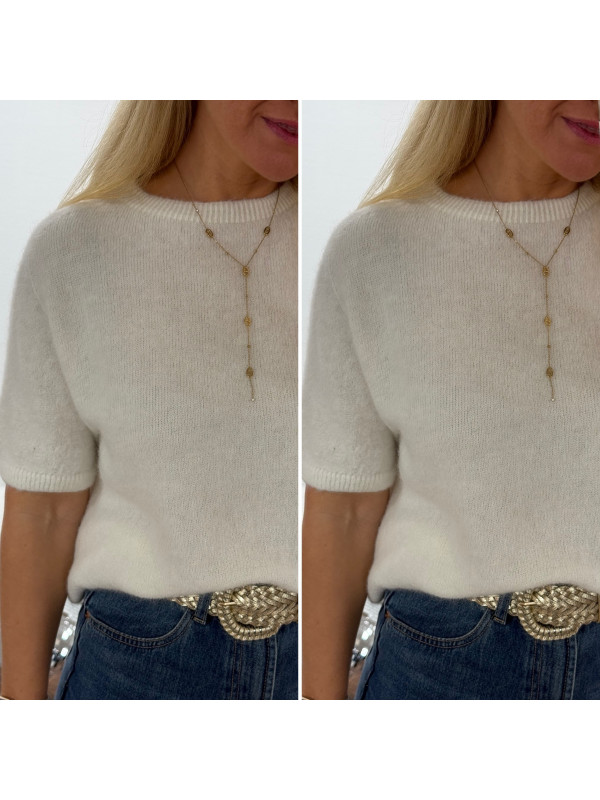 Pull à manches courtes en alpaga couleur lilas Cet article en...