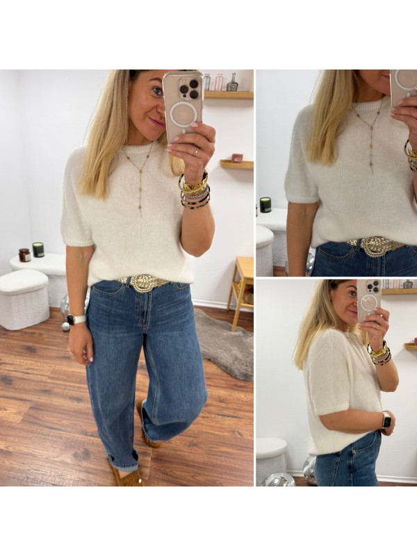Pull à manches courtes en alpaga jaune citron Cet article en...