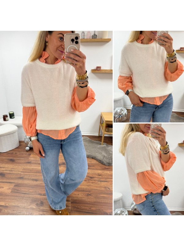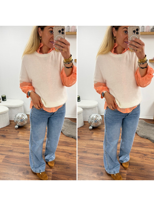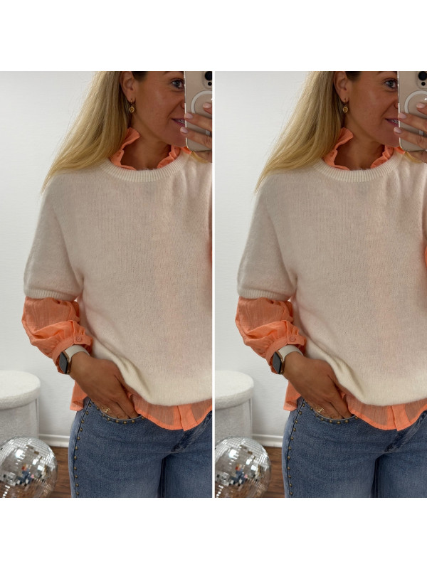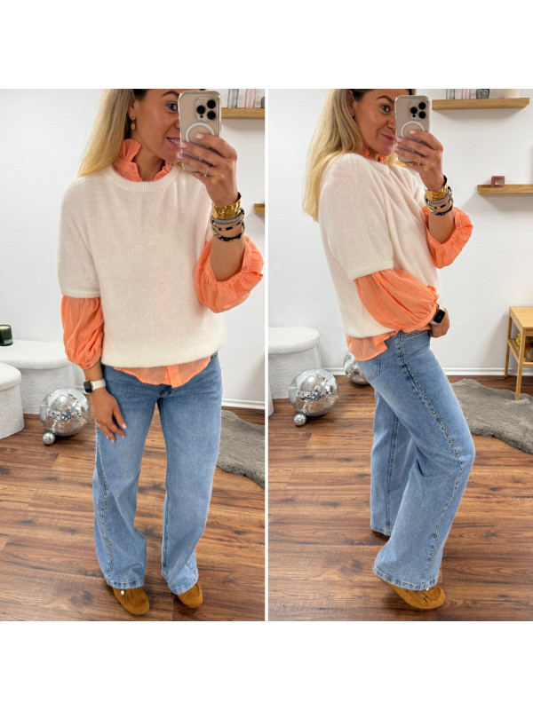 Chemise orange saumon en voile fluide vaporeuse avec manches...