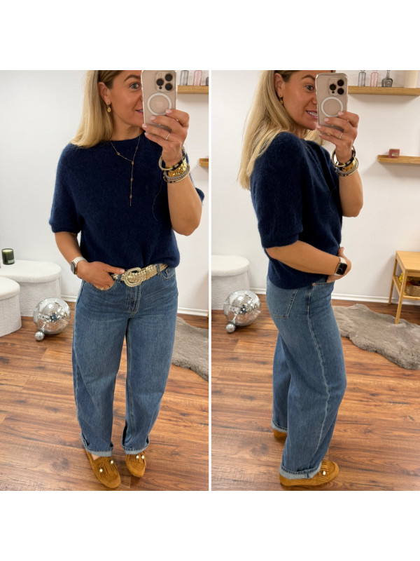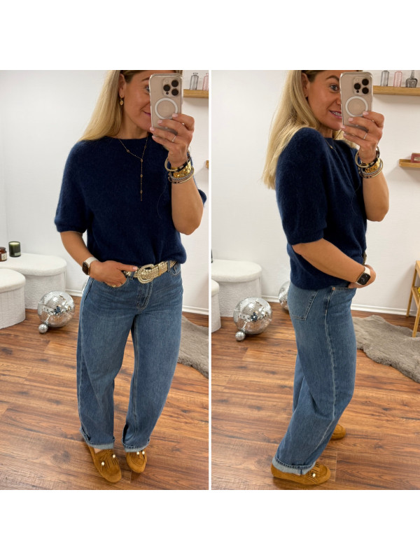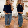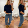 Jean ballon bleu denim avec petites pinces dans le dos sur la...