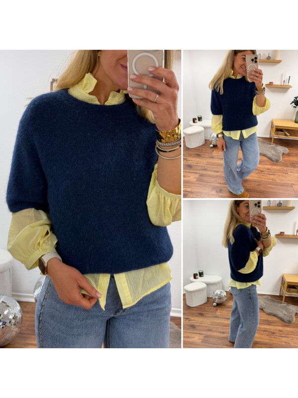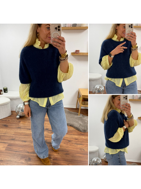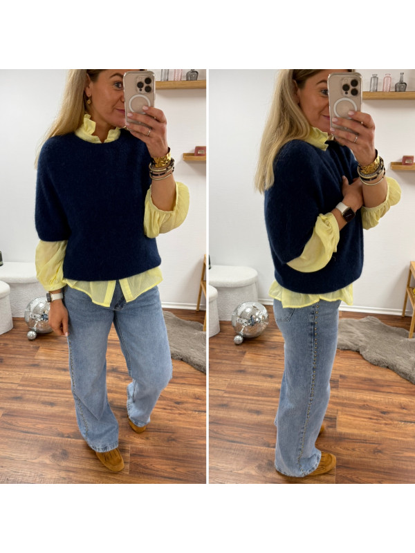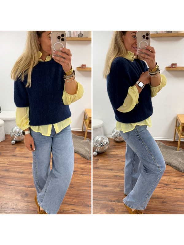Chemise jaune en voile fluide vaporeuse avec manches évasées...