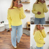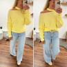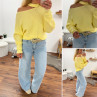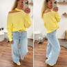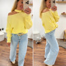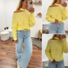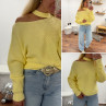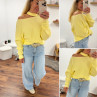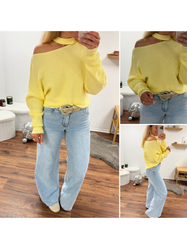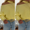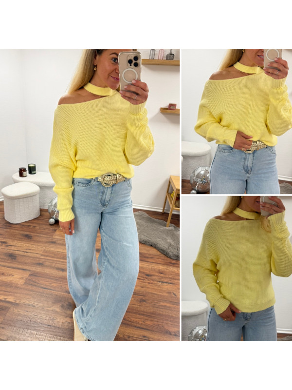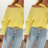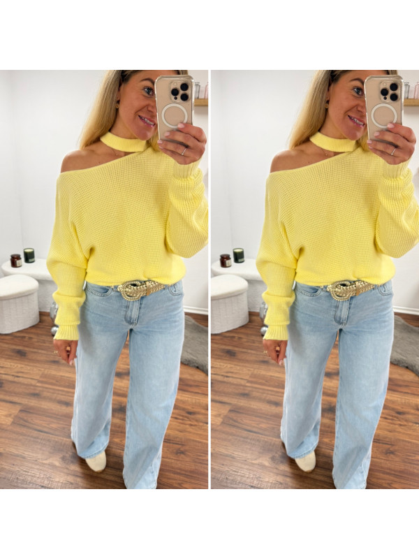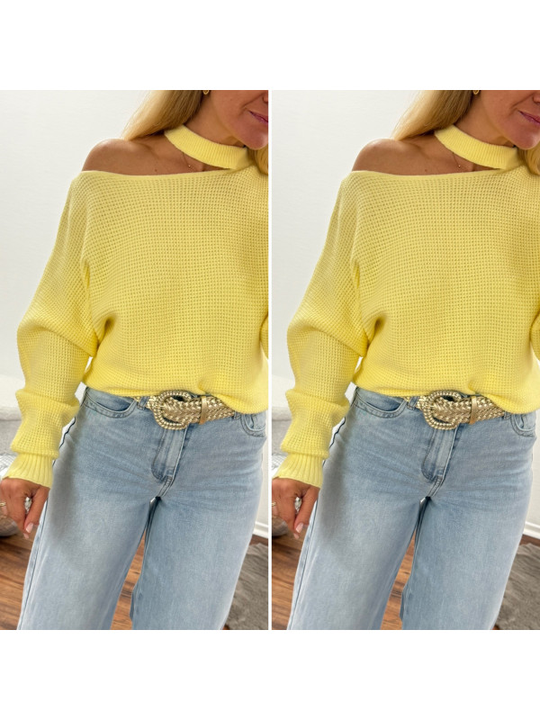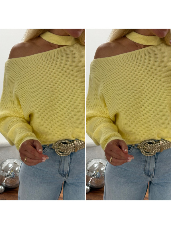 Pull nid d'abeille jaune avec ouverture asymétrique sur le col