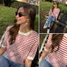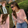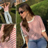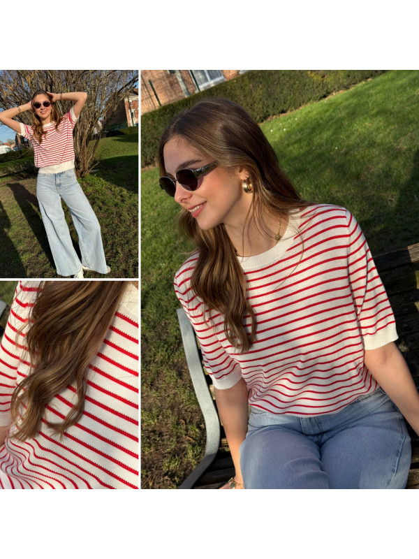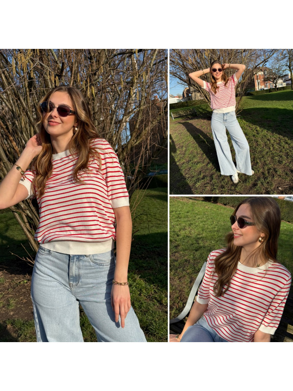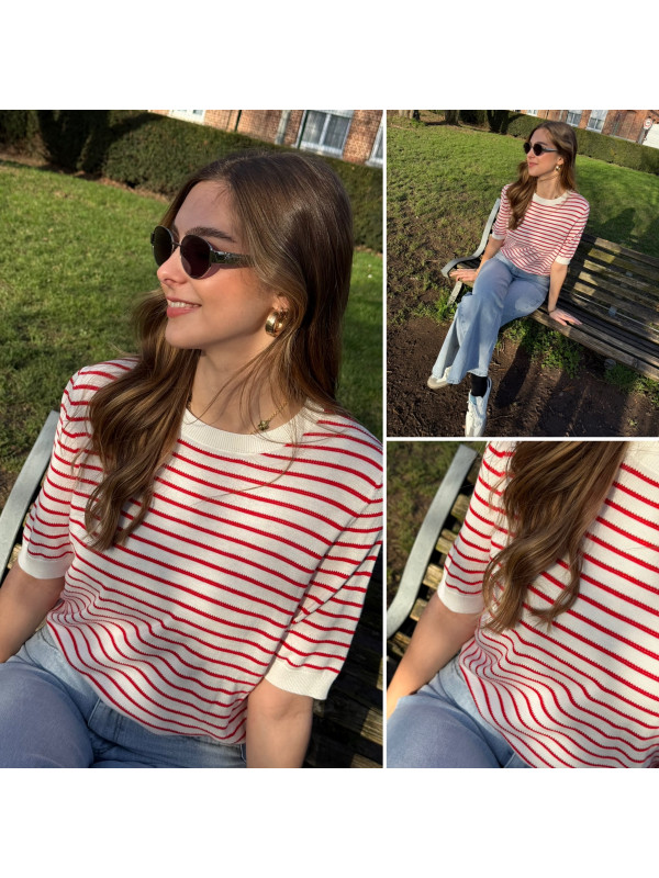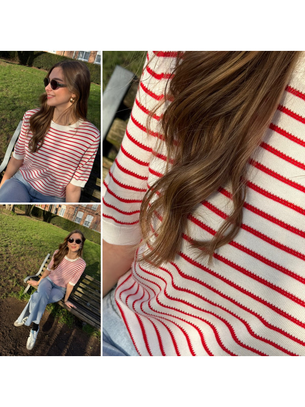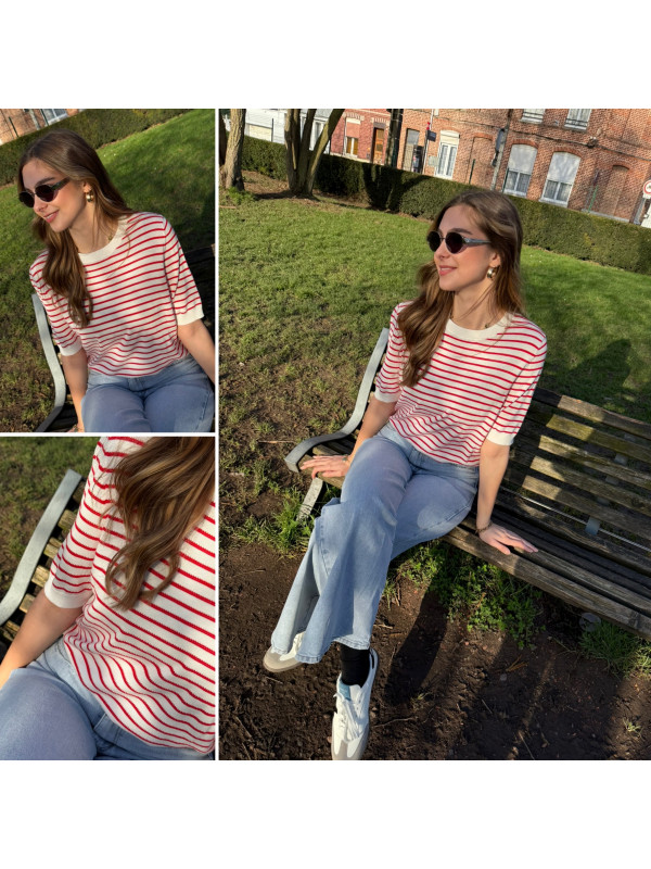 Tee shirt marinière en fine maille blanc et rouge (du 36 au 46)