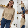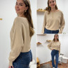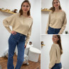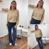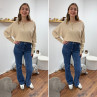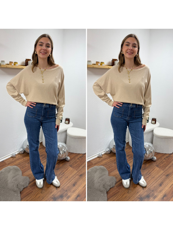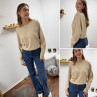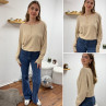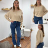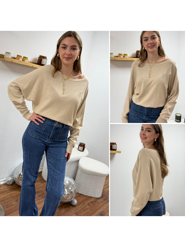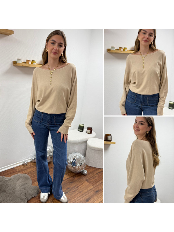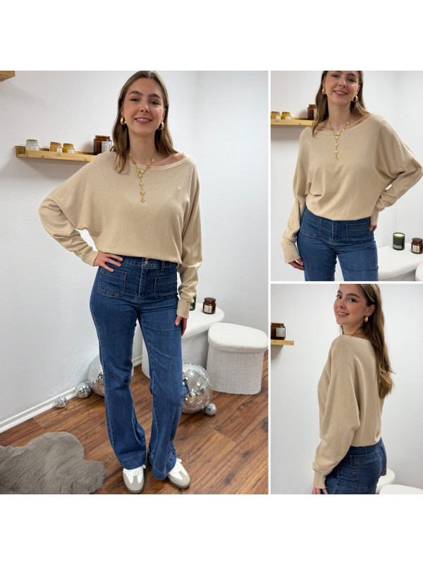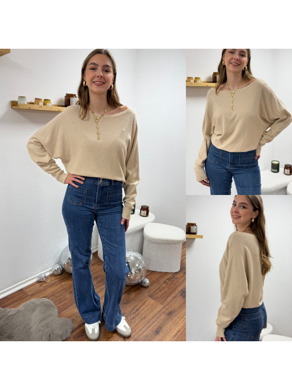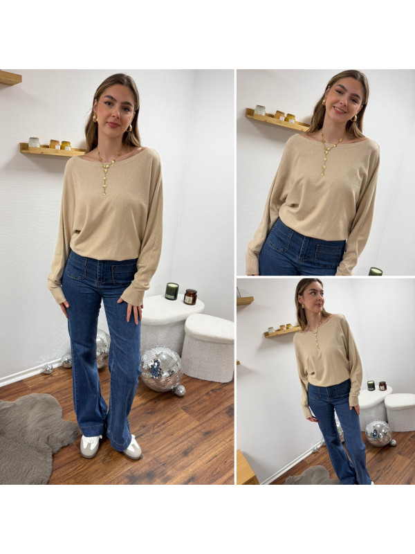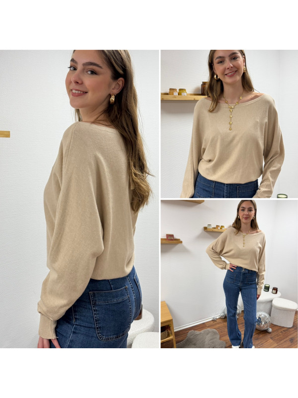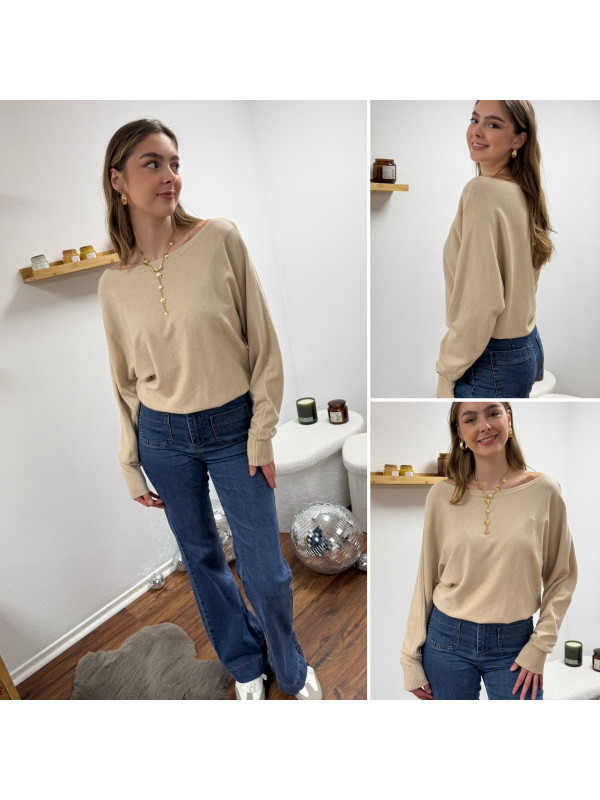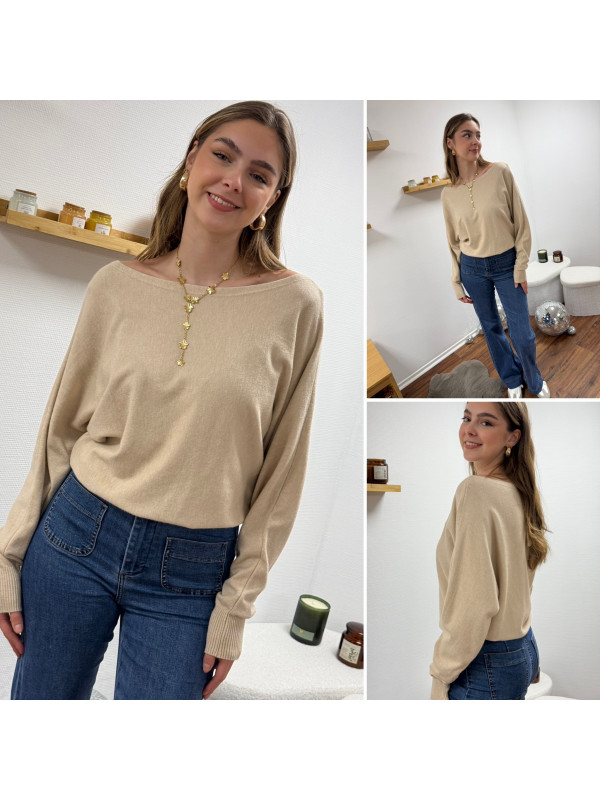 Pull léger chocolat avec col bateau et manches chauve souris...